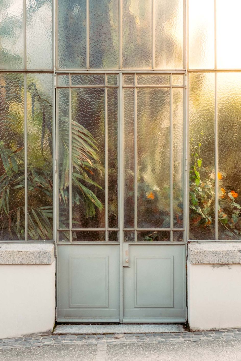 "Nature protected from the elements inspire me. A painting is hidden behind each window. Flowers sitting on the metal frame, playing with each other on a single plane like on a canvas, leaves growing in the smallest asperity. I found in those gardens the quietude of a museum."