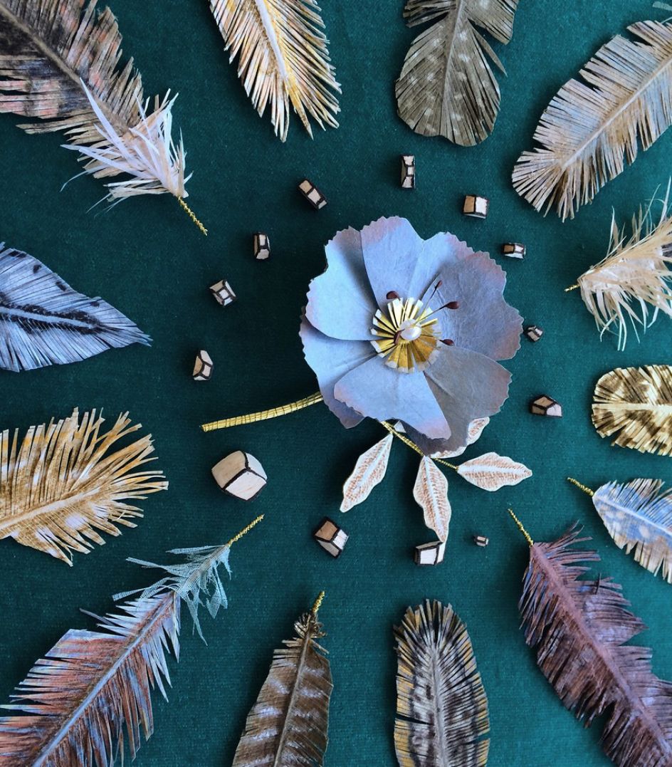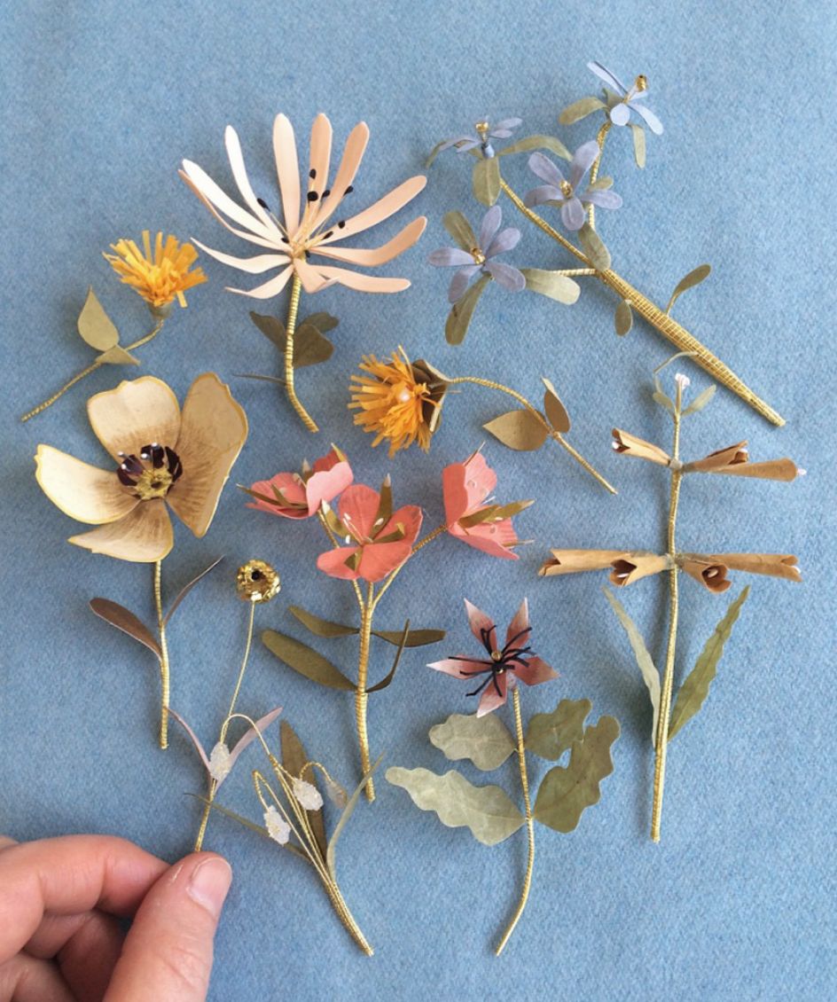 When you look closely at these beautifully delicate flowers, feathers and leaves, it would be difficult to not mistake them for the real thing. Crafted by Ann Wood, of Woodlucker – a visual partnership and studio which she founded with Dean Lucker in 1987 – the sculptures are inspired by historial botanical prints.