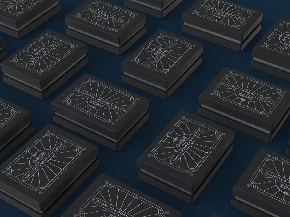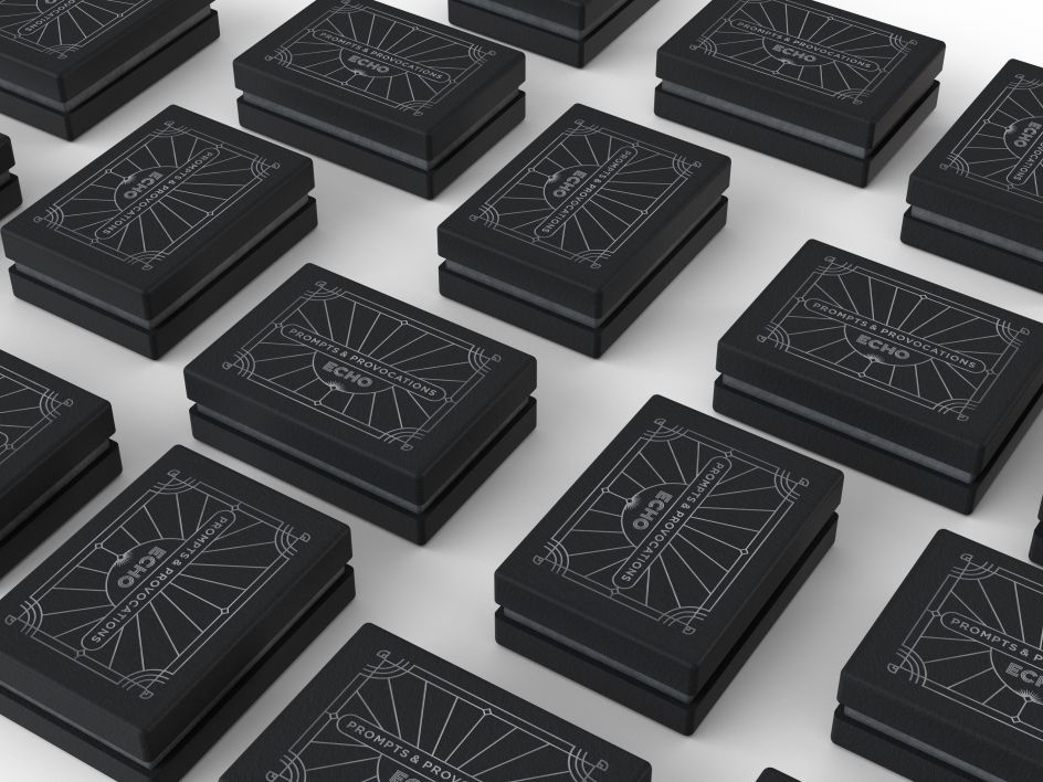 The cards' box uses a minimal, vaguely Art Deco-inspired black design with a graphic inspired by Echo's own identity etched into it with silver foil. "We wanted to create something both useful and precious," says Echo designer Eva Fernandez.