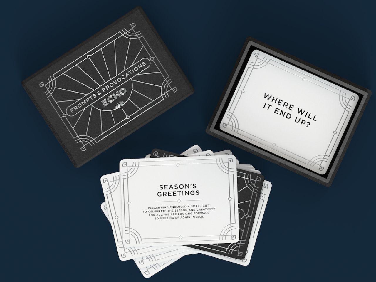 Instead of the usual cardboard slab of festive cheer, Echo's created a sort of normcore, design industry version of Brian Eno's Oblique Strategies cards, which it's calling Prompts & Provocations.
