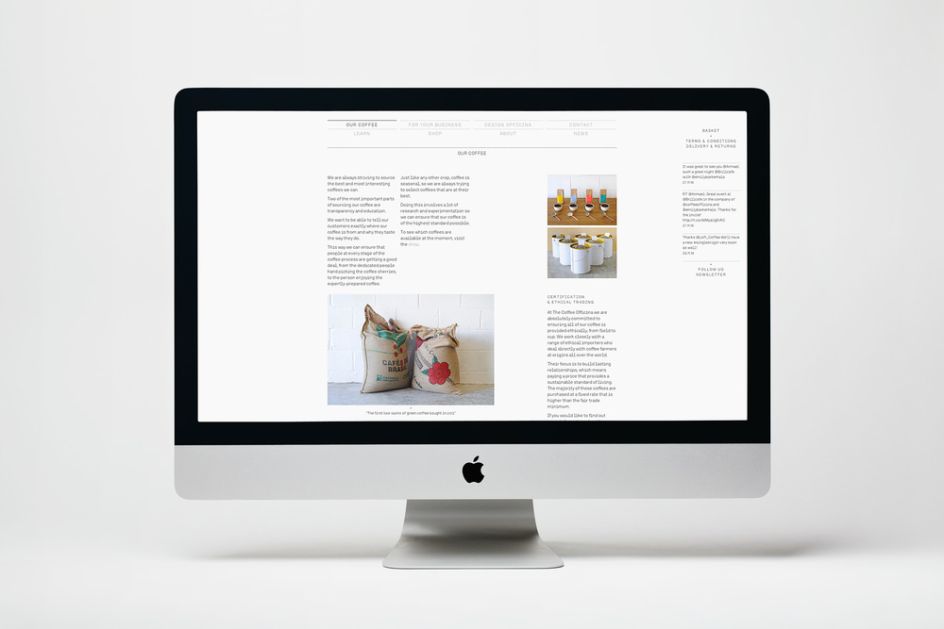 The Coffee Officina is a London-based, coffee roasting company that recently commissioned Morse Studio to create a full brand identity including logotype, print collateral, packaging and a content-managed, e-commerce website, optimised for mobile and tablet devices. Website development was by Arnas Ziedavicius.