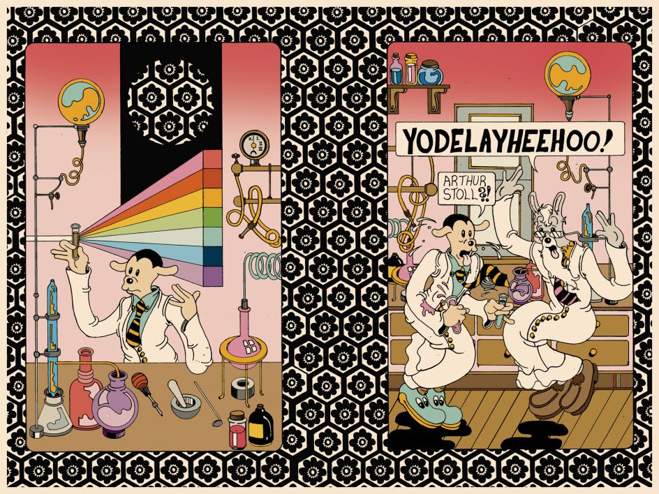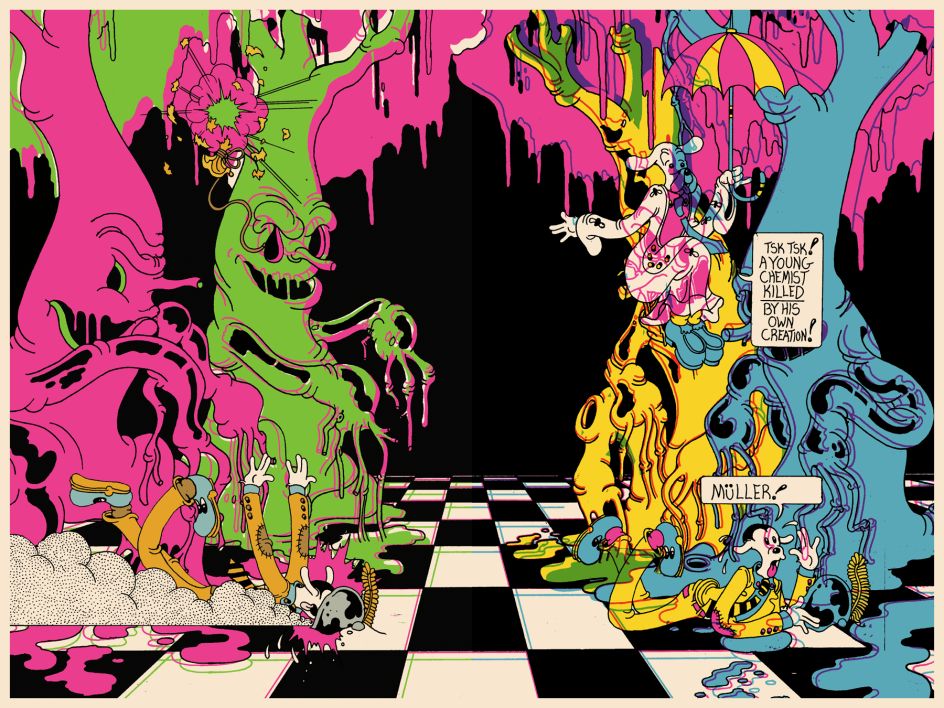 The artist's new book brings Albert Hofmann's first acid trip to life with vivid art, whimsical characters, and meticulously researched history.