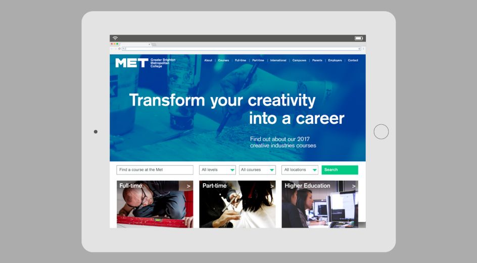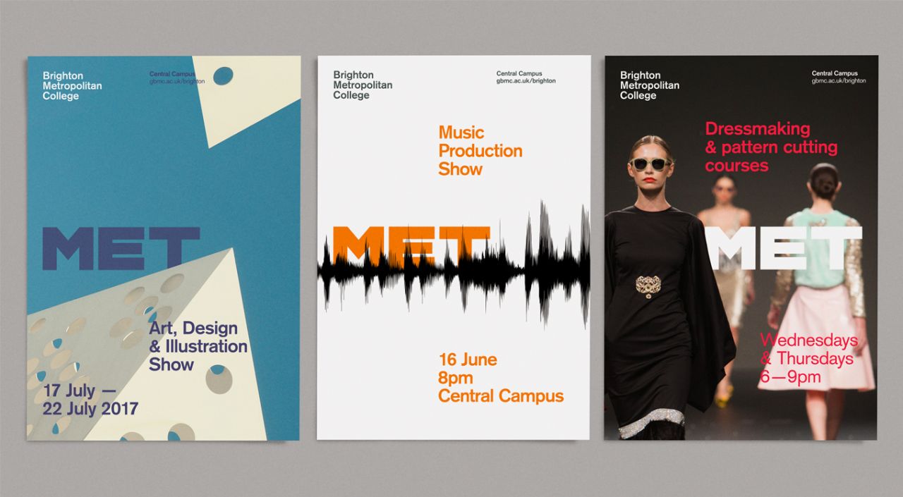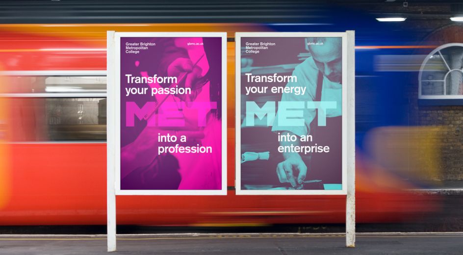 Following an intensive consultation period, local design studio Baxter and Bailey proposed a new name – Greater Brighton Metropolitan College, or MET for short – and helped to establish a brand hierarchy for the new group of colleges.