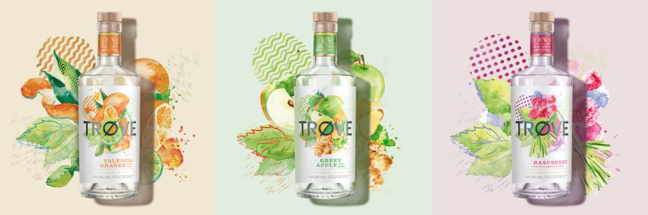 London studio Butterfly Cannon has created the designs for the new low ABV calorie-light, botanical vodka spirit drinks brand, TRØVE. According to the agency, the range taps into the "post-Covid upsurge of interest in a more balanced lifestyle".
