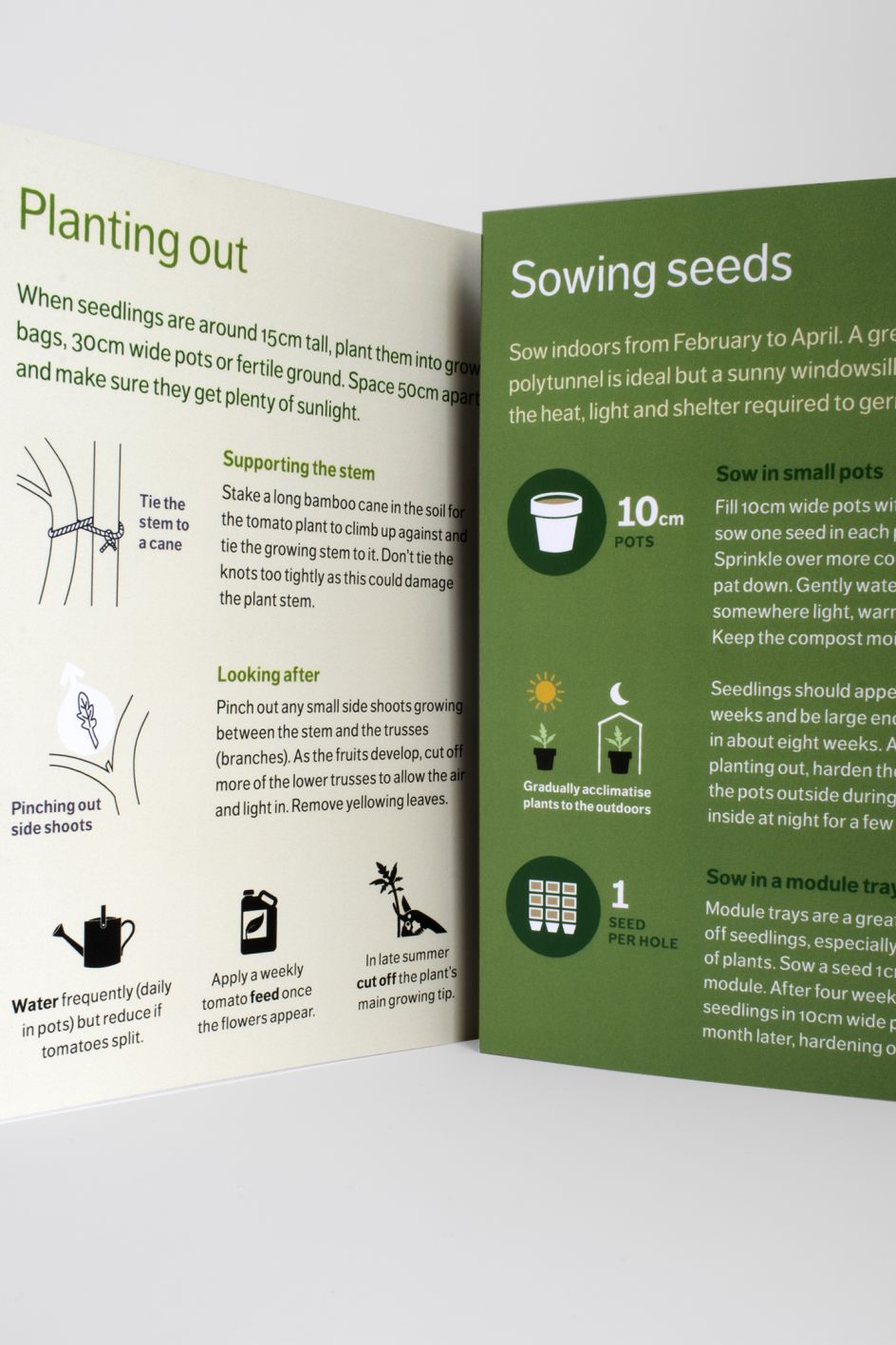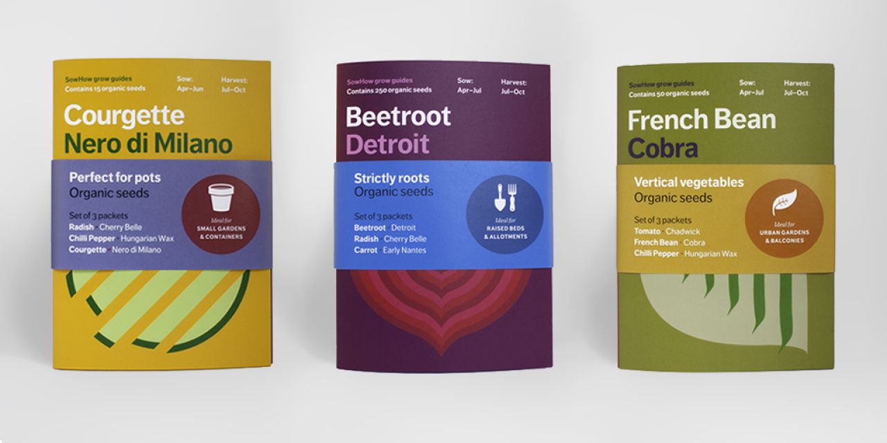 SowHow is a range of organic vegetable seed packets designed in Bristol – the European Green Capital for 2015. The bright, modern, minimalist cover designs open to reveal pages of carefully-crafted, illustrated growing advice. Aimed at a new generation of grow-your-own urban gardeners, the packets feature easy-to-follow advice on how to sow seeds and look after crops, along with tips on harvesting, eating and storing produce.