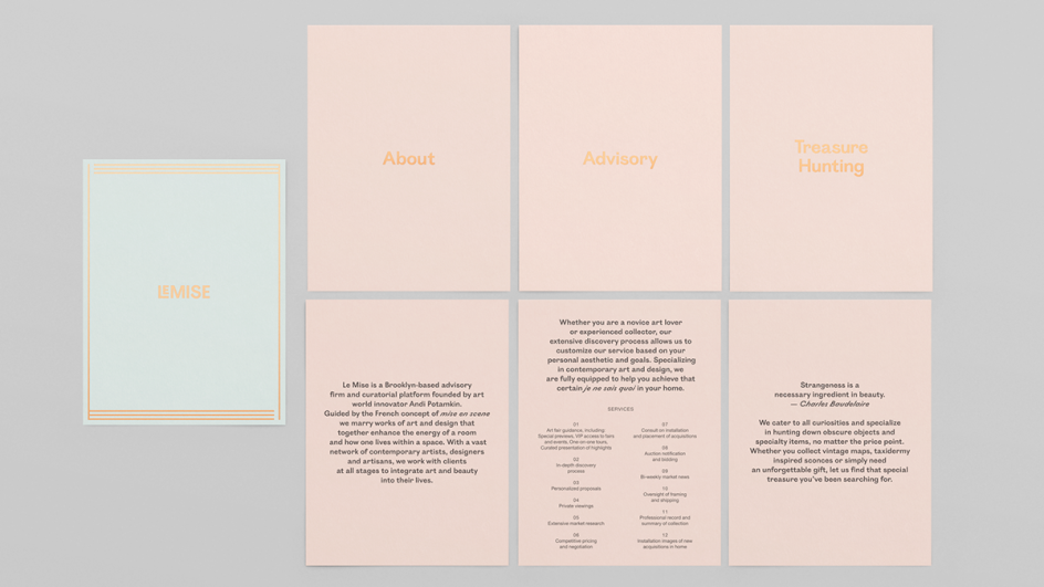 Produced for Le Mise, the Brooklyn-based art and design advisory concept of Andi Potamkin – New York’s modern day art gallerist, DIA created a concept that offers a personalised experience for the collection and enjoyment of art.