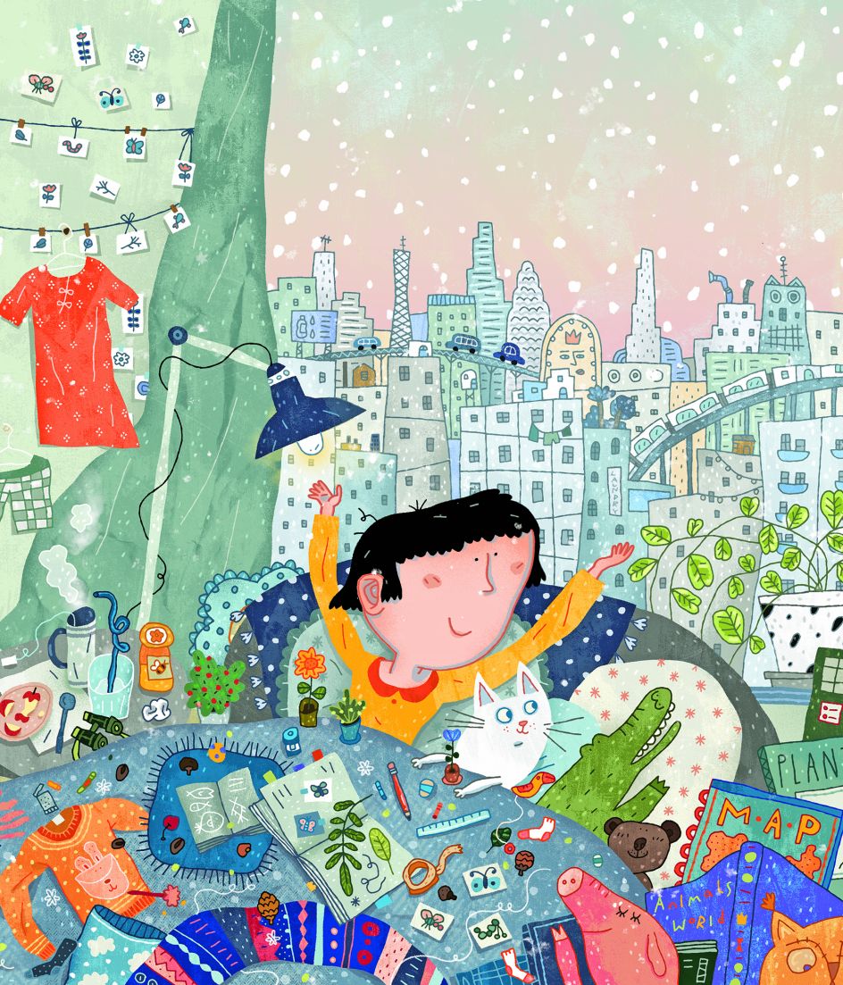 The back and forth was worth it, though, as the project has a deep personal connection to Cara. "I feel incredibly fortunate as the story is among the most beautiful pieces I have read in a long time, and the author is one of my favourite children's book authors in China," she says. "After the project's completion, the chief editor told me that my work differs from the ordinary style they would commission, but they love my work for its uniqueness."