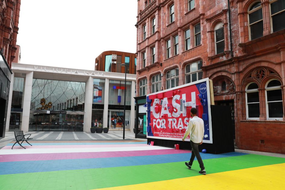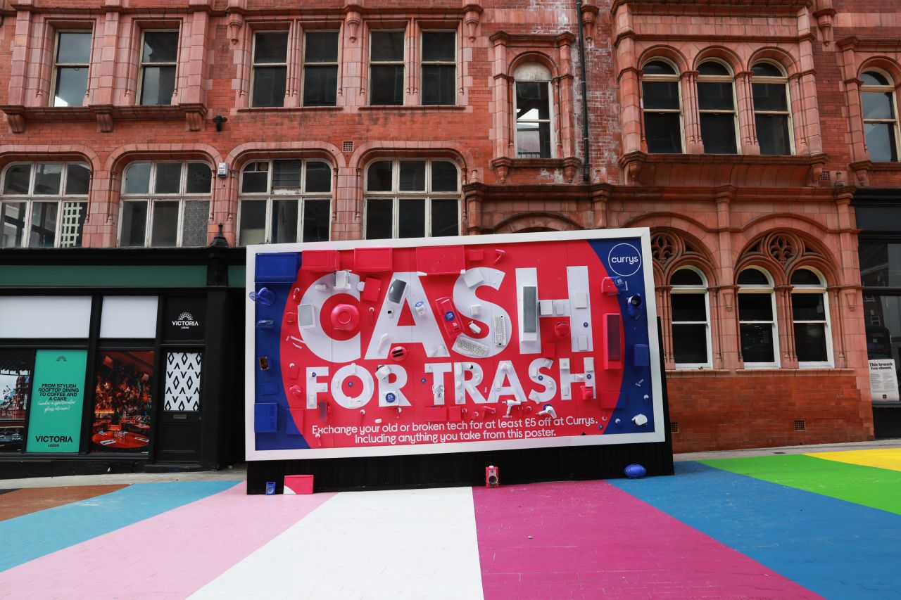 Special billboards in London, Leeds and Manchester have been laden with old and broken tech devices to promote Currys' Cash for Trash scheme. And passers-by can grab these items, remove them, hand them into a store, and get money back in return.