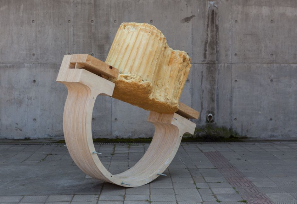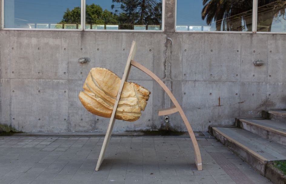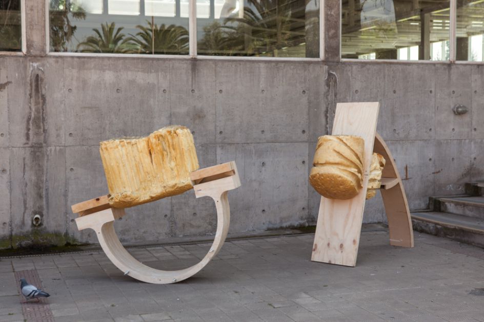 Using metal, polyurethane, silicone rubber and foam, some of her pieces seemingly contain huge loaves of bread or somehow incorporate plastic buckets for building materials. She adds: "These materials are assembled together so that disproportion and exaggeration are constant presences in my work. They manifest themselves in different ways: either in the materiality and scale of an object and/or in the interactions that make up one work as well."