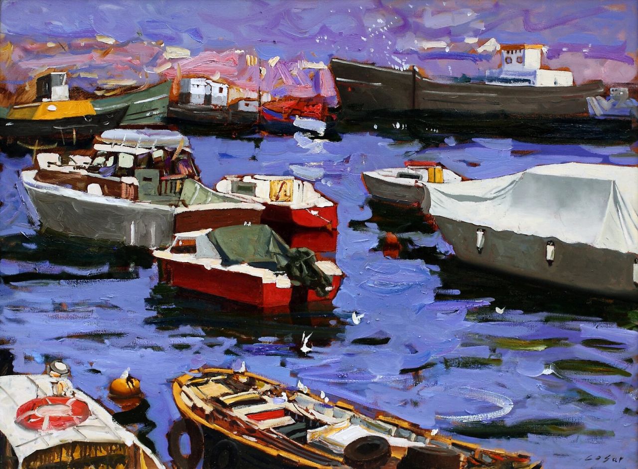 Uniting all of these images together, though, is the recurring motif of water. This symbolises the source of life in Cesar's paintings, and it provides a serene backdrop in his depictions of canals, ports, beaches, and rainfall.