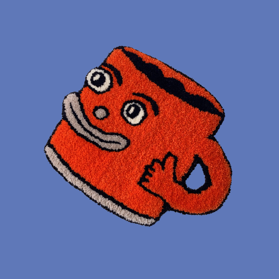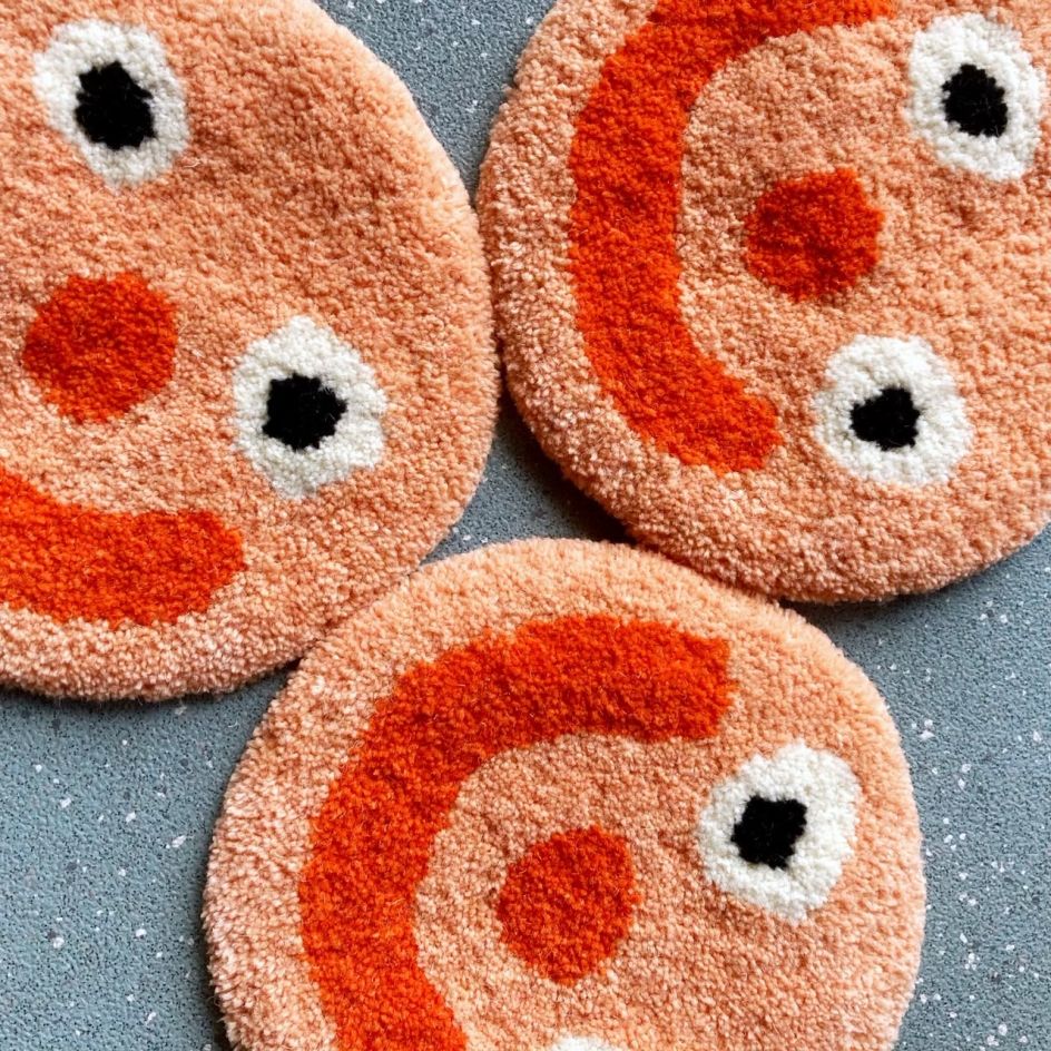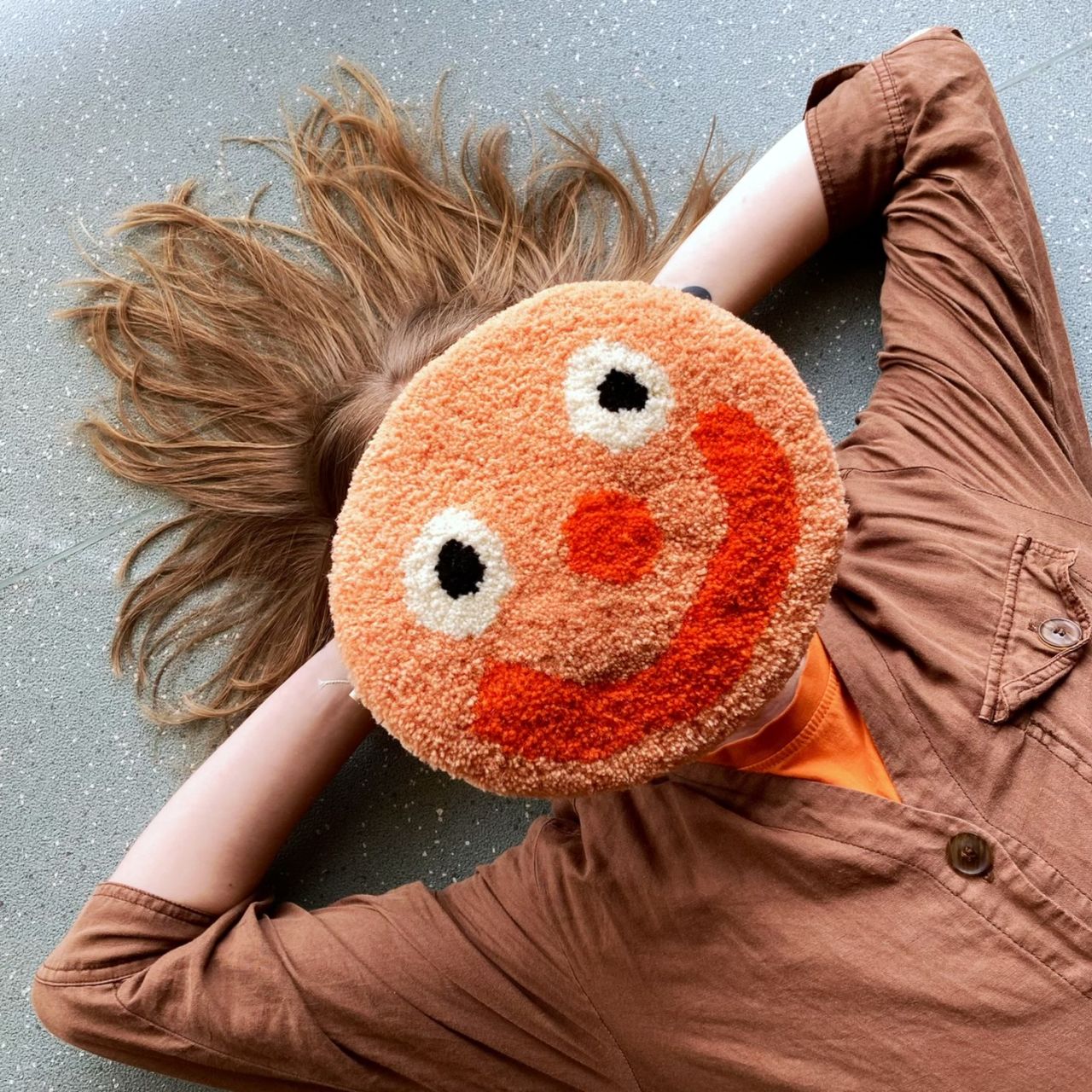 "Putting flat bits of clay together to make a 3D structure is so satisfying to me!" Cadi tells us, beginning to play more and more with the scale of her sculptural pieces, and highlighting the crucial tactility of her work. Also eternally drawn to textiles, Cadi creates beautiful tufted rugs decorated with her signature silly, sad and sometimes scary faces.