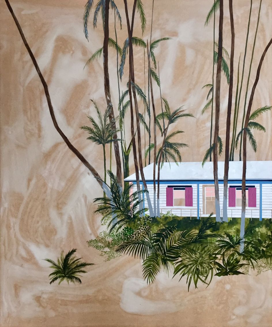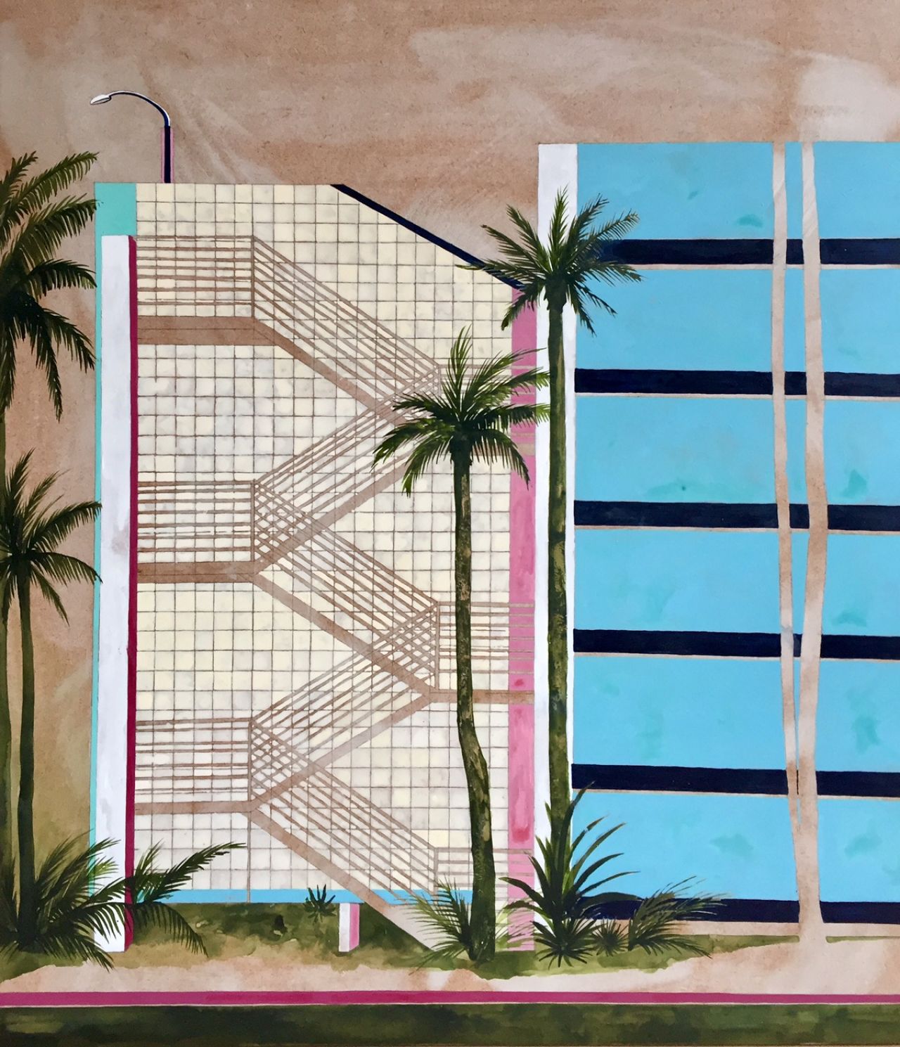 In an upcoming solo exhibition at Arusha Gallery in Edinburgh, Charlotte's 1960s and 70s-inspired pieces will be on show to the public. She says: "I aim to create intriguing and surprisingly illusionary interiors. The landscape and sea, with swimming pools and birch trees have consistently become a significant part, and over time any combination of these features are likely to play an integral role in my paintings.