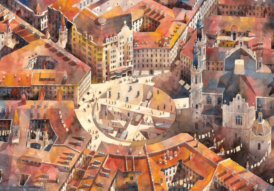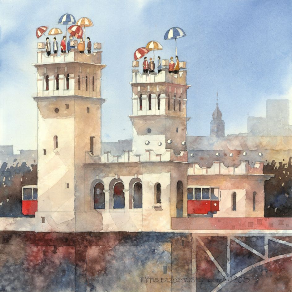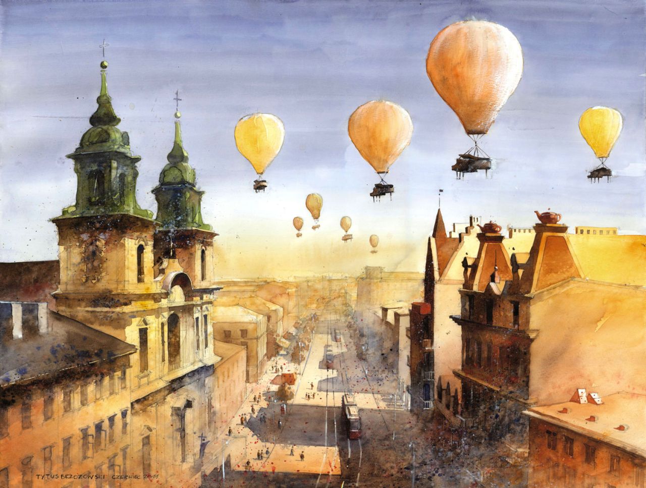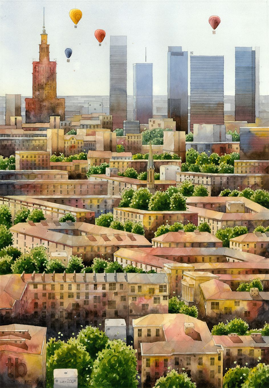 For the past five years, Brzozowski has been working at Jems Architects. And through his paintings, Tytus presents the city of his dreams – full of decorative buildings, narrow streets and soaring towers.