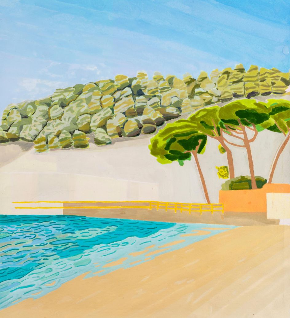 Working mainly with gouache on paper, Clara also takes inspiration from artists such as Paula Lawrie, Dike Blair, Lois Dodd and David Hockney, pointing to the vibrant colours they use.