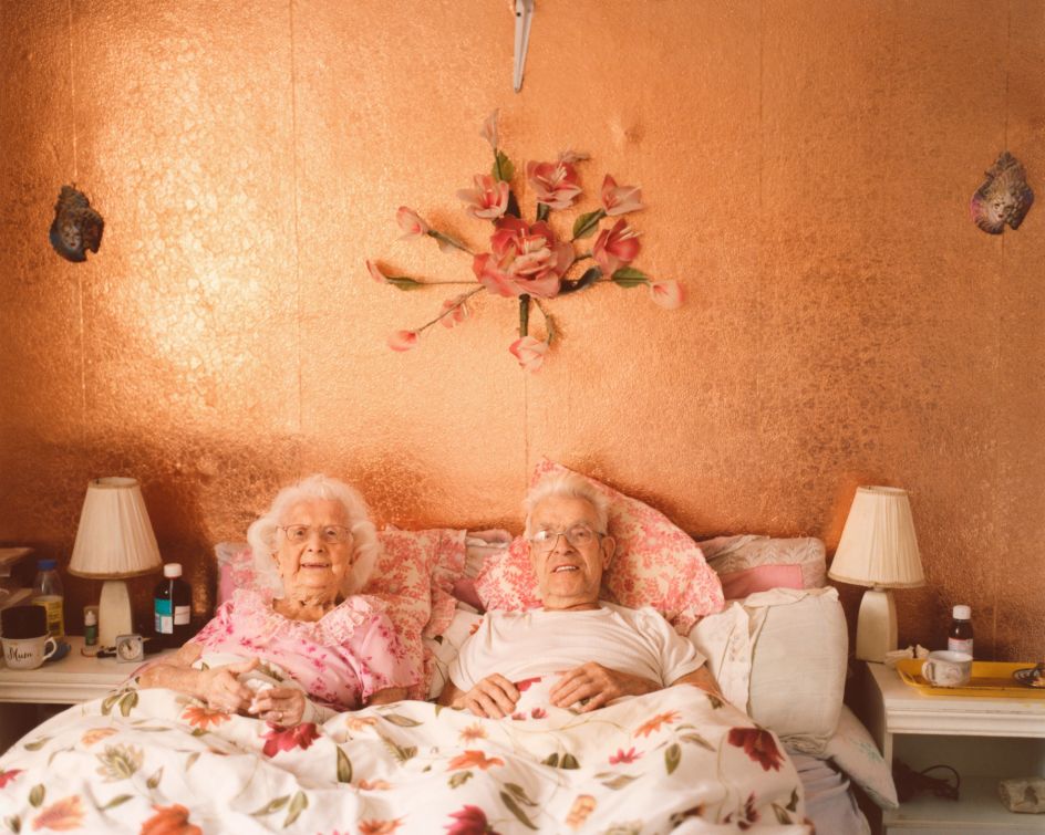 Most prominent, though, are the portraits of Jean and Pat. We see them cosied up in bed, sipping a cuppa and smiling at their granddaughter Laura, who's taking their picture. The kind that can only come from closeness between the subject and photographer.