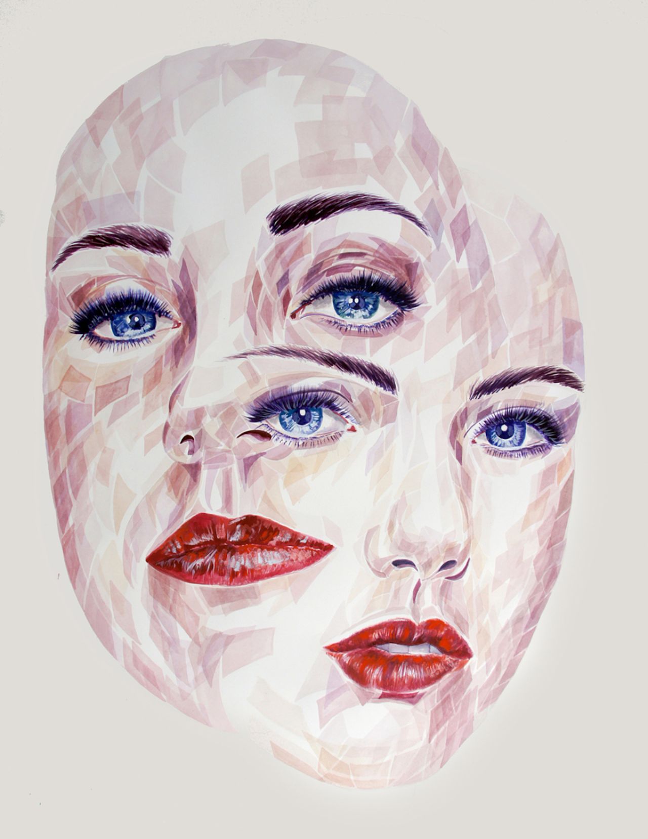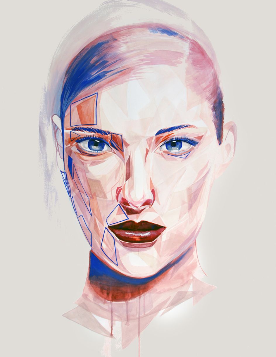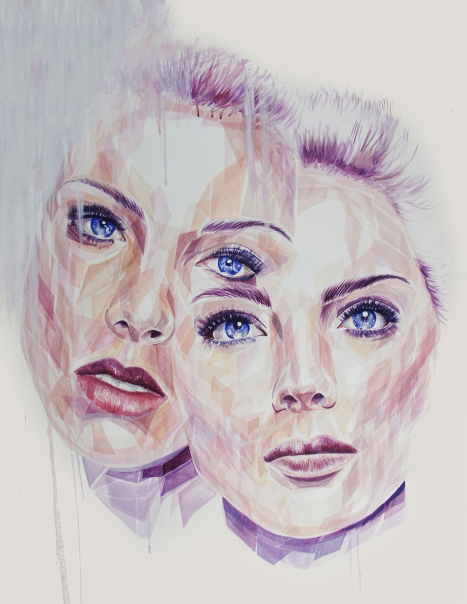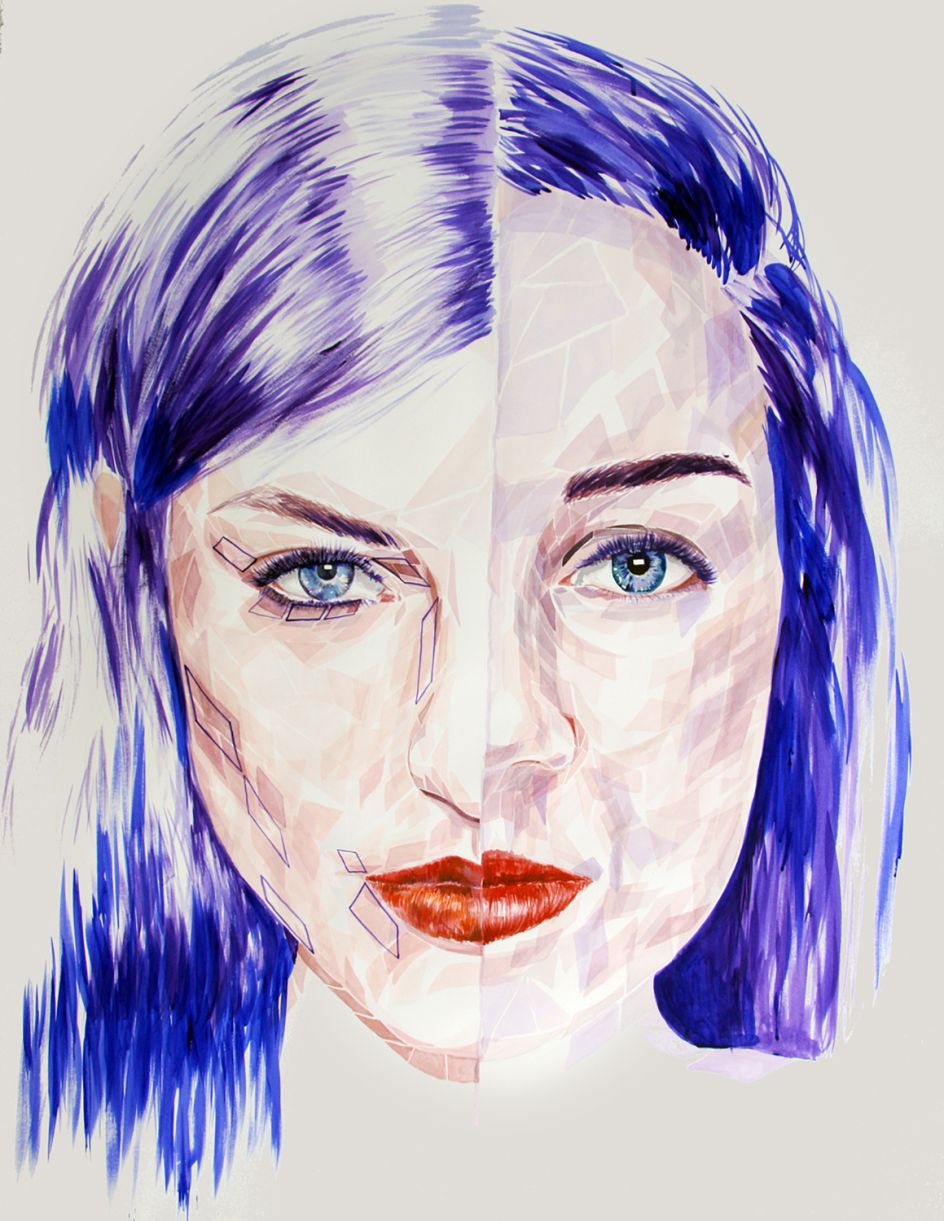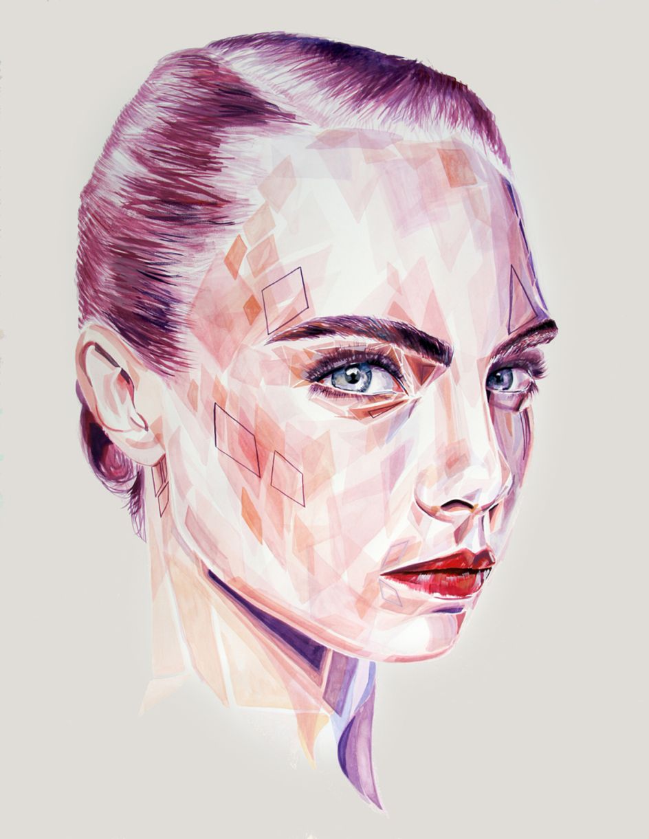 She explains the concept behind her latest collection of watercolours: "I am a young, middle-class woman, in modern western society. This fact alone has left me submerged in societal influences of impossible appearance standards and numb to the bombardment of advertising featuring nameless faces- the generic “beauty”.