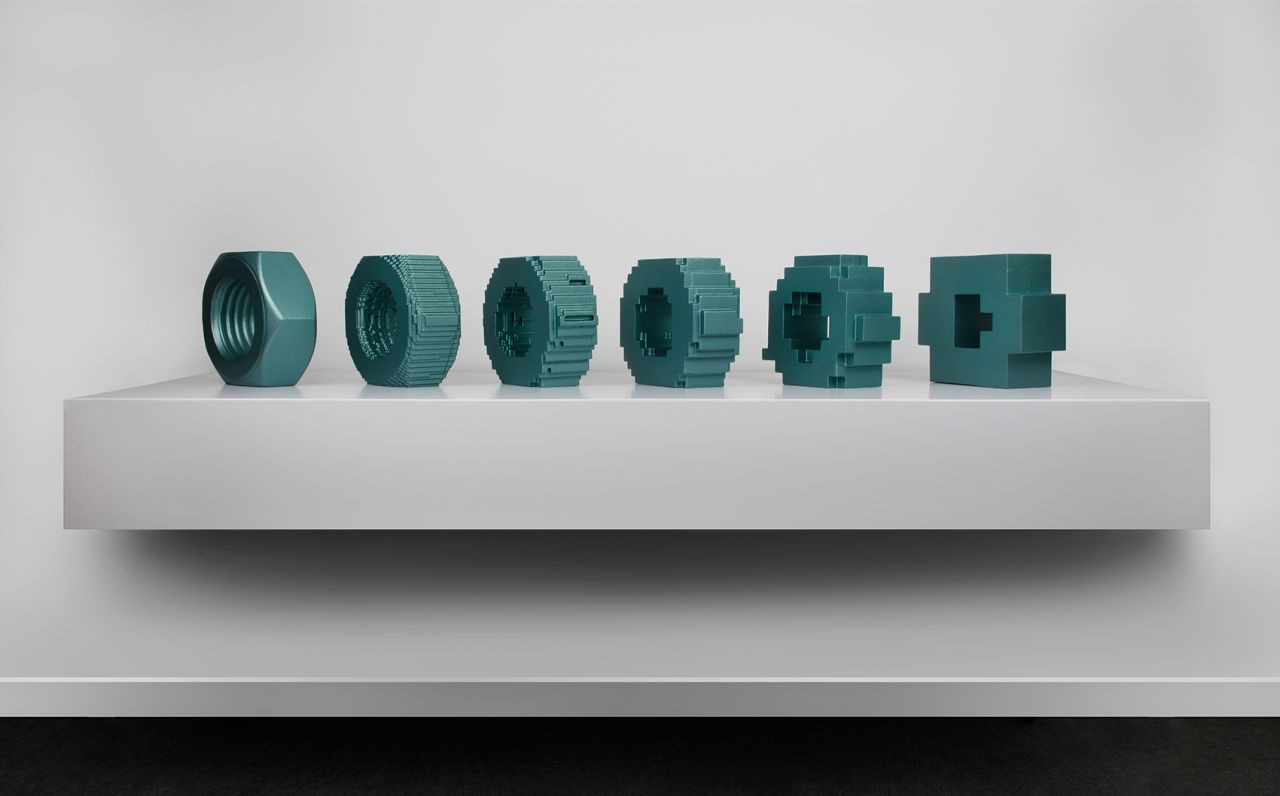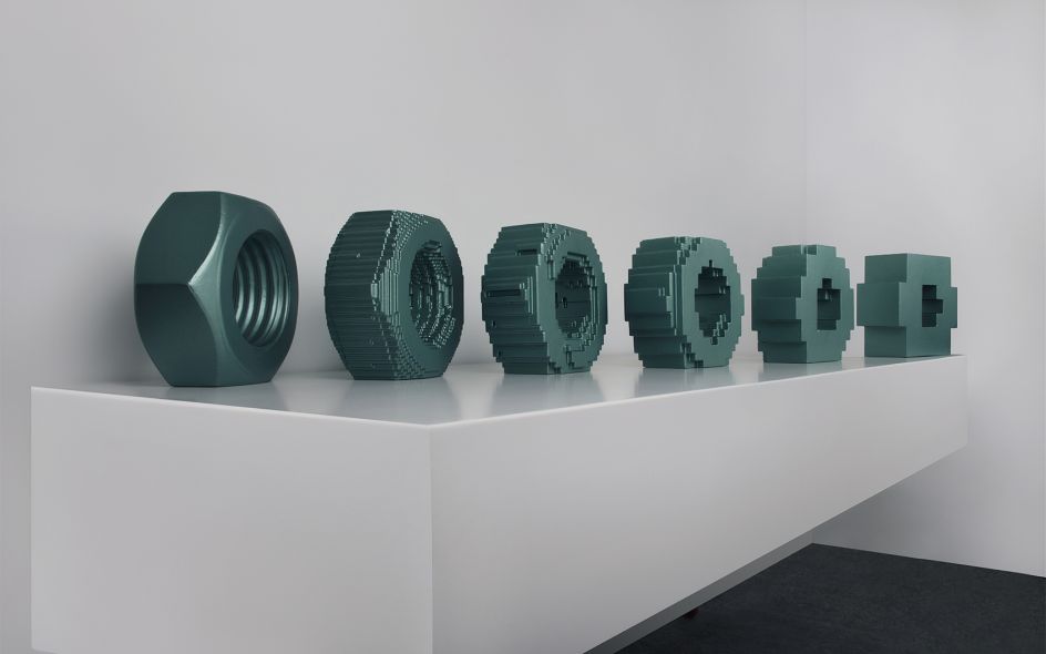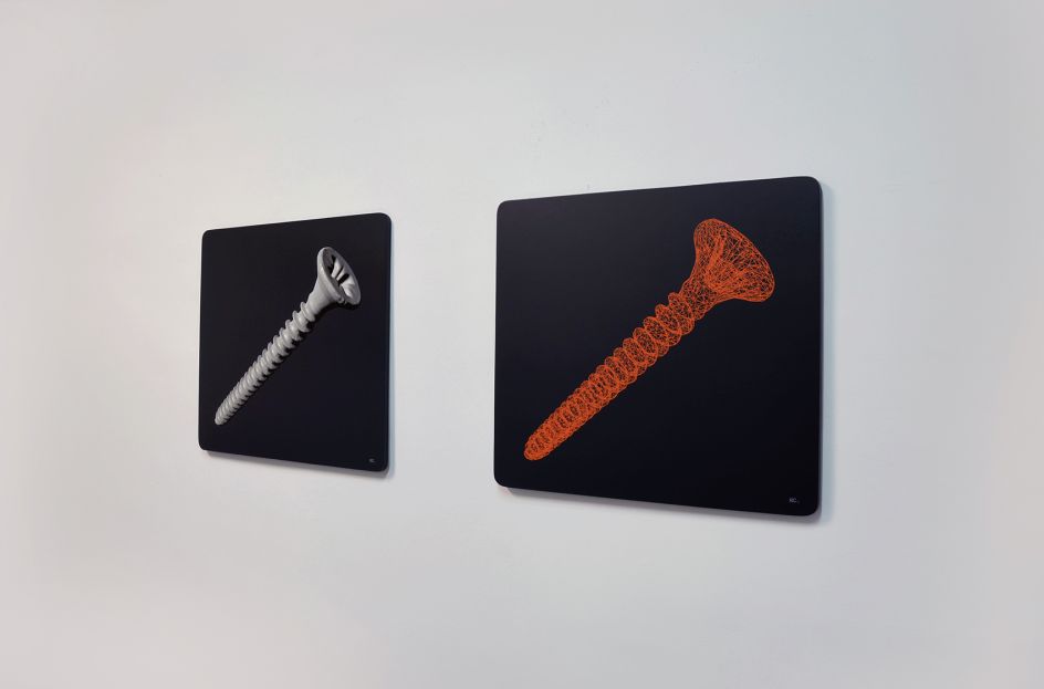 Focused on painting and sculpture, it explores "visible reality through the analytical lens of the 3D computer-modelling world", delving into the relationship between the art object that takes visible reality as its point of reference, and the boundaries of verisimilitude between observable reality, art and science.