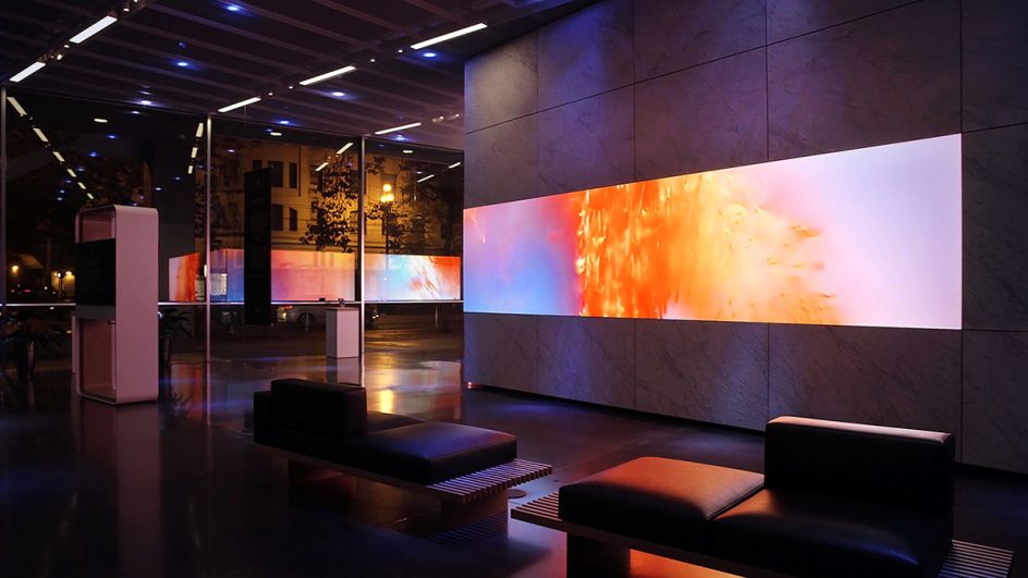 The site-specific installation was constructed by the team at Berlin-based studio, onformative, for Dolby Laboratories in San Francisco. The team explains: "Collide is an exploration of the senses by transforming recorded motion data into abstract visuals and sound.