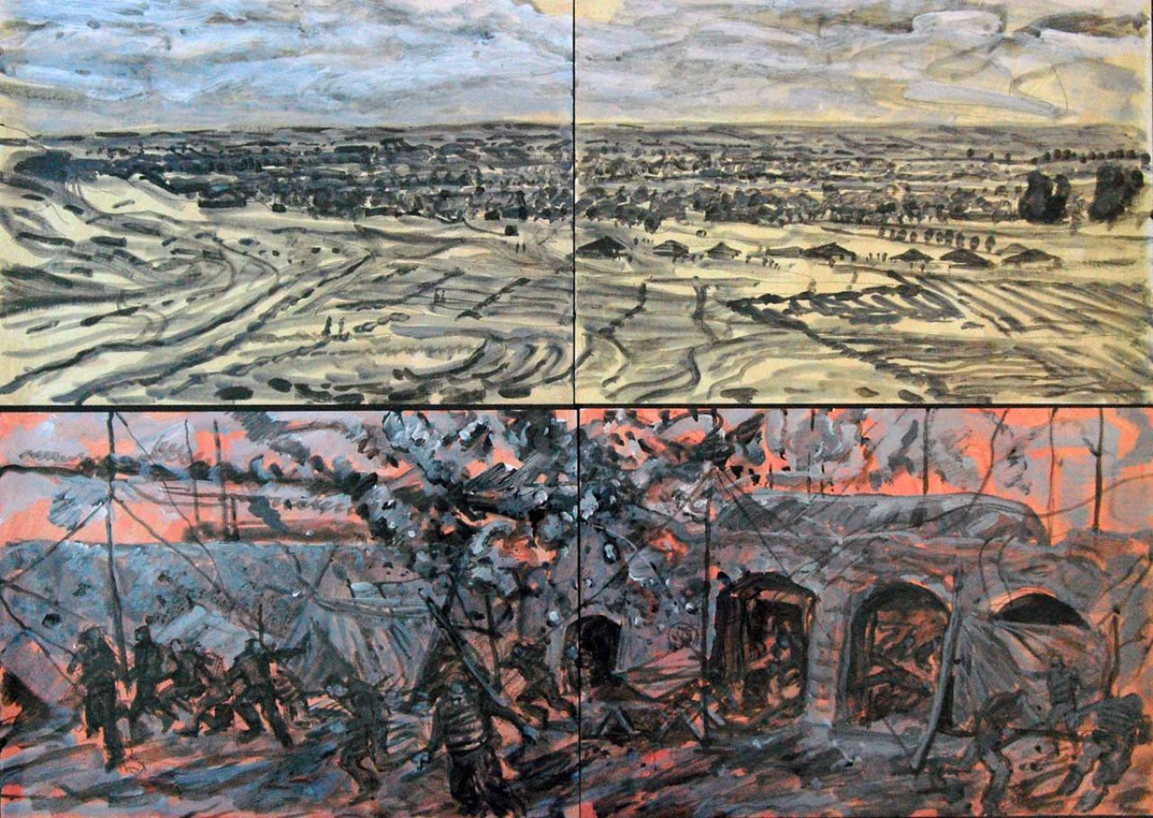 The Combat Art Kit is the creative idea of Anita St John Gray, whose late husband served in the Royal Marines, who together with curator Tim Martin, artist Jon England and arts educator Stuart Rosamond developed the project. The initial project could not have gone ahead without funding from the Royal Marines Charitable Trust Fund, Go Commando, Pardoes Solicitors, Brewin Dolphin Investment Management and recently CQC.