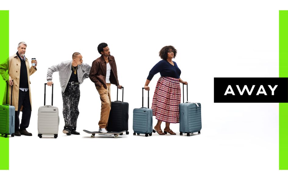 Away is one of Combo's longest-standing partners, with a relationship that began when the brand was still an idea in a pitch deck. Combo built the positioning and the identity from scratch, intentionally avoiding fad-driven trends (USB suitcases, anyone?) in favour of a more timeless vision.
