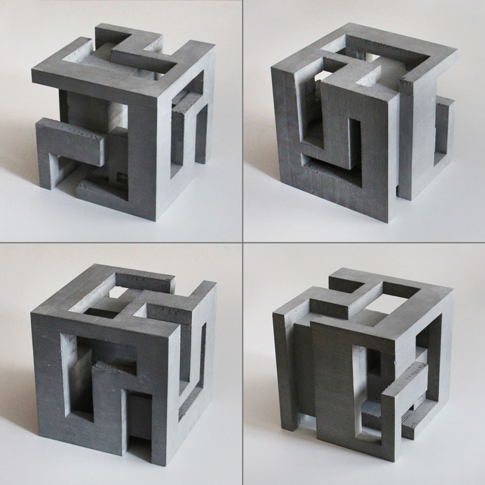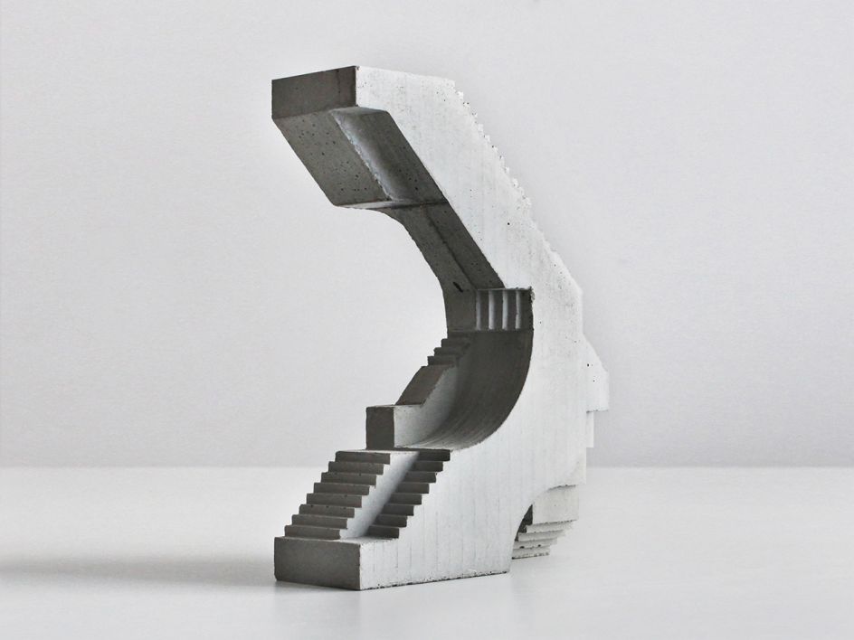 Not much is known about the Dutch printmaker MC Escher, but his familiar mind-bending artwork, Relativity, has been reproduced countless times in popular culture. You know the one. It inspired that famous scene in Jim Henson's Labyrinth, and who could forget David Bowie wandering through the optical illusion. This is what springs to mind when we consider the concrete modular sculptures of David Umemoto – featured previously.