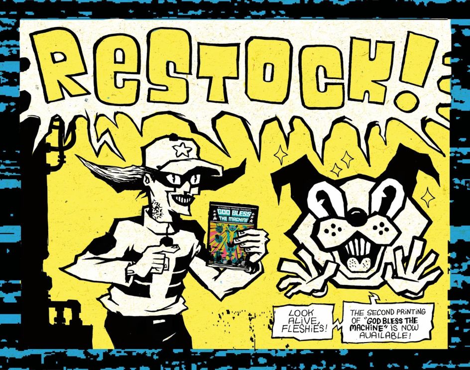 Should Connor choose to delve into this, there's clearly an audience ready and waiting for him. That's if his comic God Bless The Machine is anything to go by, which is now in its third printing and amassing something of a cult audience.
