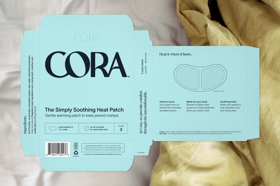 At the core of this goal was the idea that consumers want an empathetic brand identity that genuinely understands what they're going through. "We want to evolve period care to feel more like self-care," says Andrea McCulloch, VP of brand and creative of Cora. "Branding inspired by skincare and beauty–packaging worthy of belonging on your bathroom countertop, not hidden away in the drawers below."
