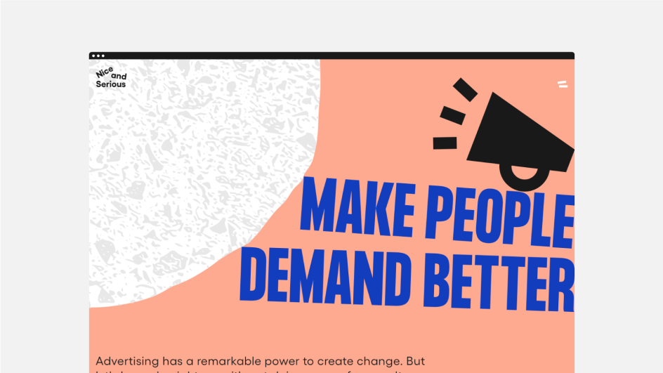 Nice and Serious creative director Peter Larkin says the new purpose has "given us more confidence to talk about how we want to make people demand better through our work. Whether that's better business, better products for the environment, or better from governments and policymakers".