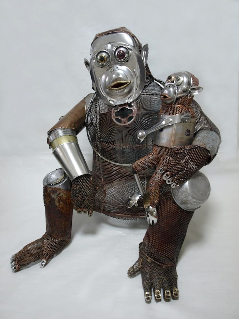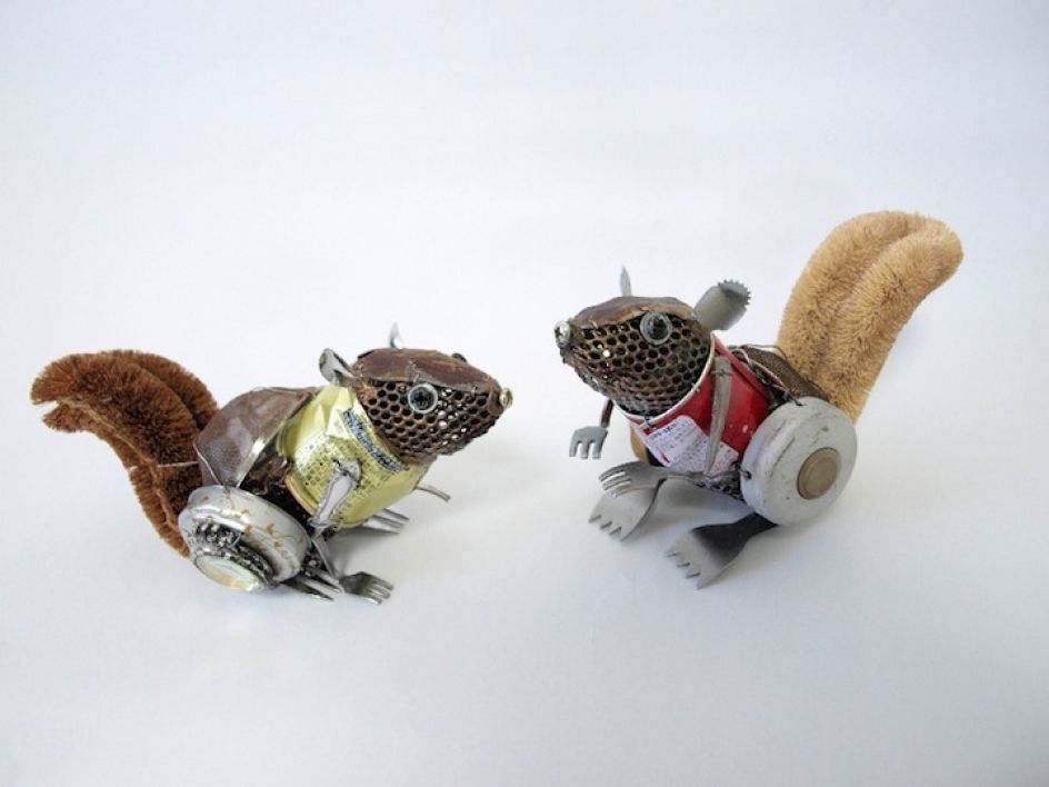 Using anything from old cutlery and discarded cans to kitchen utensils and buttons, the talented sculptor has managed to playfully reproduce the likeness of some of our favourite animals - a monkey, a snake and even a pair of mice.