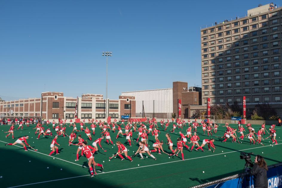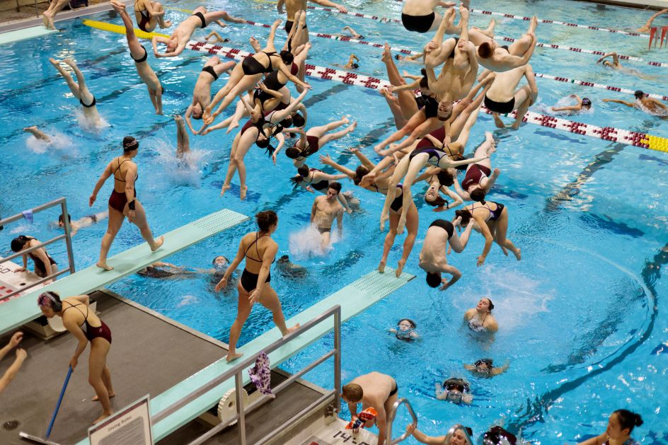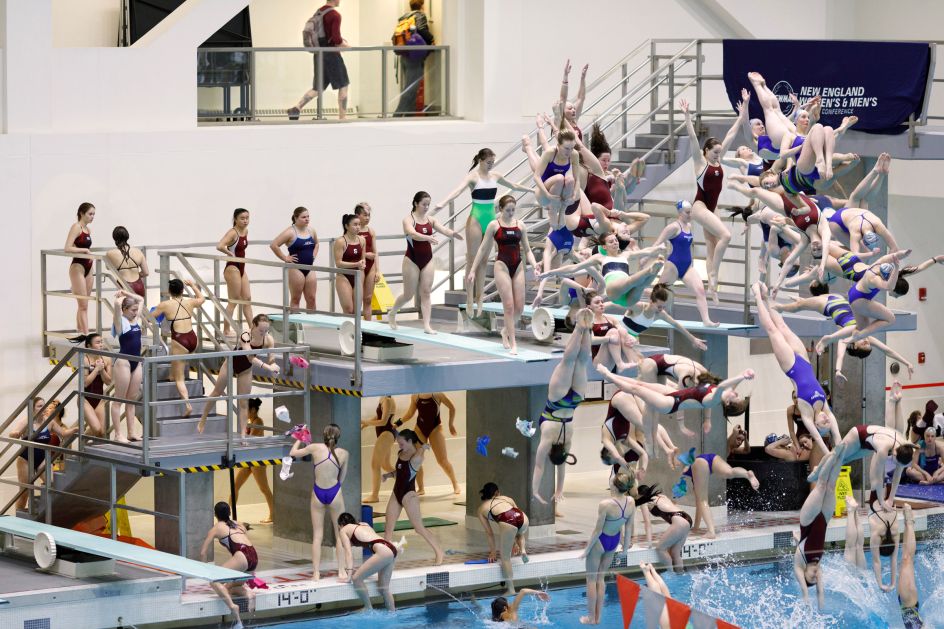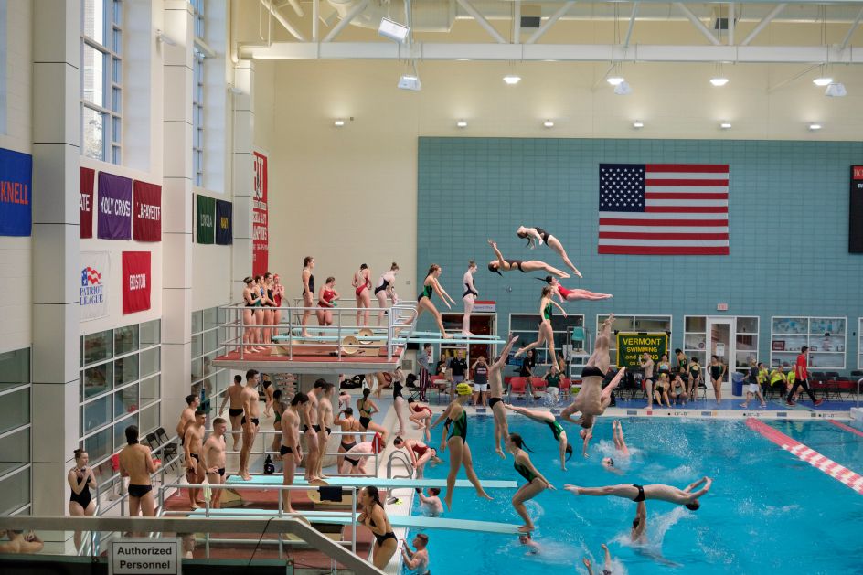 "My subjects are the lightly attended fields, arenas, and stadiums of college and amateur teams (especially women’s teams) around Boston, where I live," adds Pelle. "I try, in the series, to convey a sense of ecstatic chaos – rhythm, pattern, and bodily pleasure that conspire to turn sports back into a game, one may be invisible to the eye, but clear to my camera."