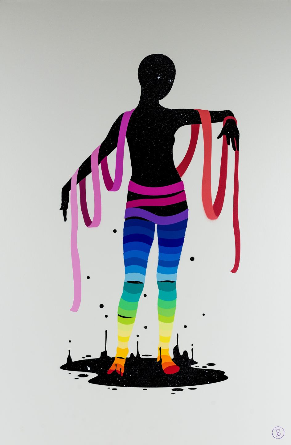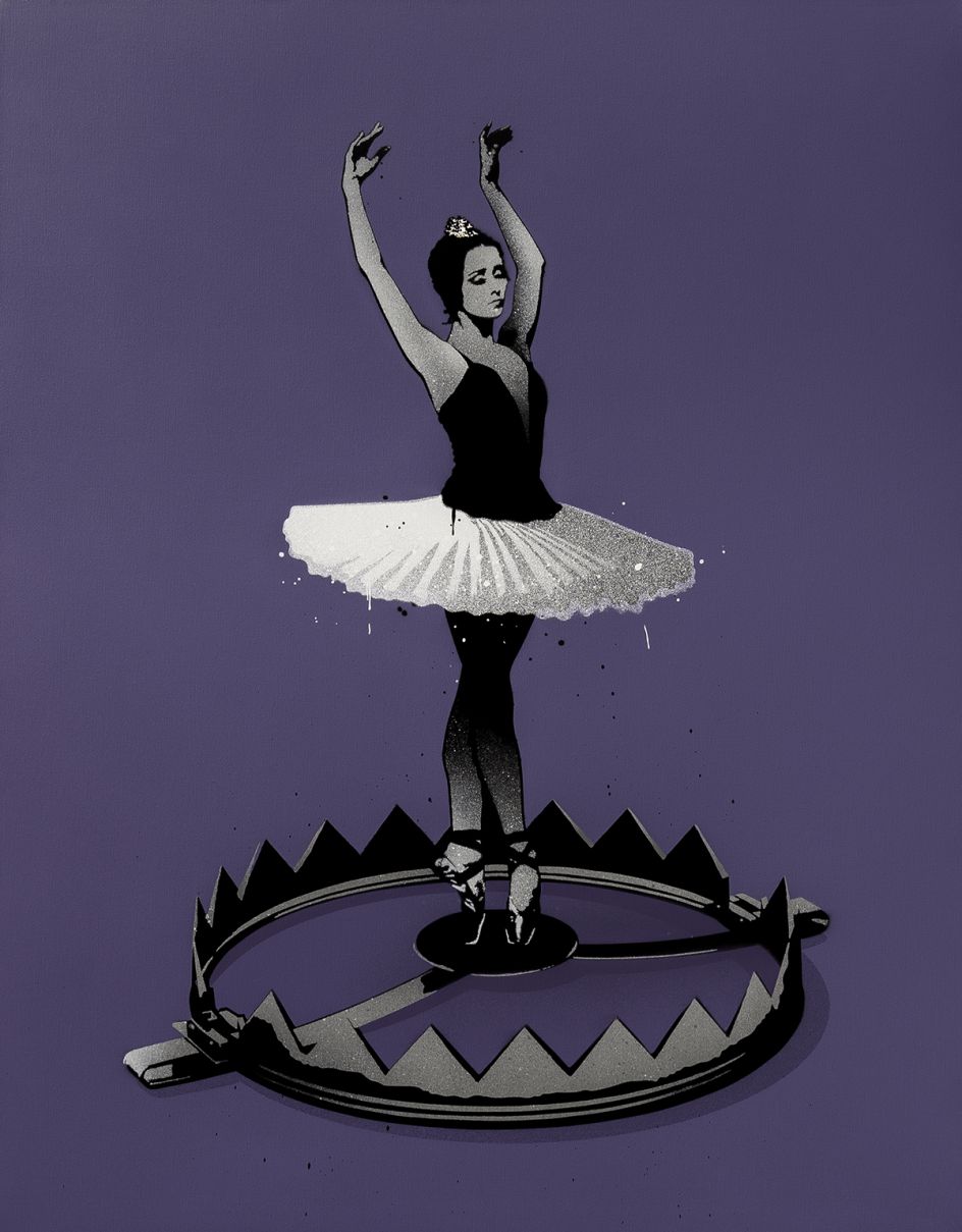 Seeking to evoke familiar discomfort within all of us, Dance Boldly Through The Storm explores the beautiful and often caustic realities of the world. Eelus mixes humour with the macabre, light with dark and bright bursts of colour against grey skies. The regular juxtapositioning in his work highlights the paradox of day-to-day life and carries subtle political and social messages.