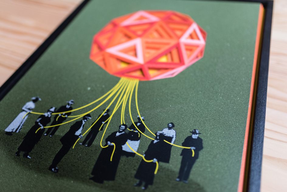 While sticking to his favoured monochromatic palette ignited with pops of vivid colour, Eelus expands his methodology in this latest body of work. The show will feature spray paint on canvas, multi-layered wood and paper and his first-ever 3D sculptural pieces.
