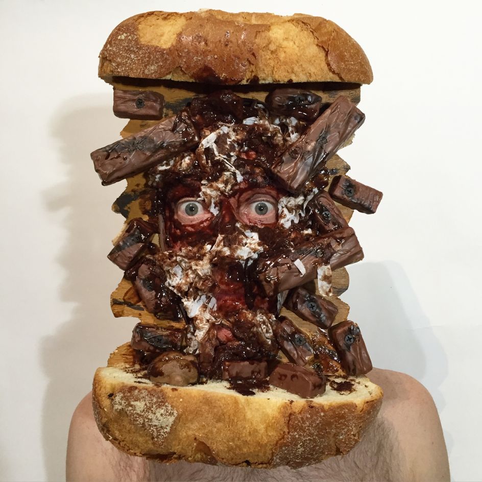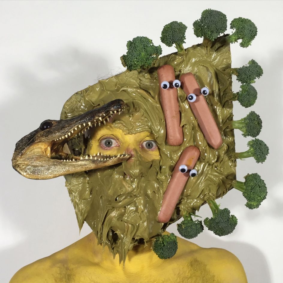 Known for transforming himself into bizarre characters using masks and wearable sculptures comprised of food and consumerist detritus, the artist calls this practice "Resemblage", a term he coined to describe his unique conceptualisations, humorously and disturbingly exploring the dark side of American pop culture and politics. His pieces aim to question humanity, the modern day and aims to incite the imagination, exploring notions of "the self" in the narcissistic world around us.