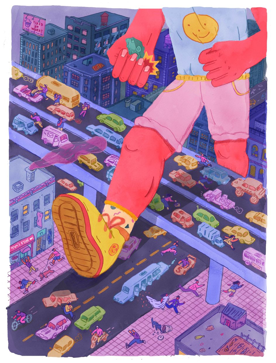 With a focus on tactile, textural qualities, David's illustrations are instantly recognisable thanks to his striking use of colour and unique eye for detail. A huge influence on this look is the work of Josh Cochran, who David studied at school. "I still follow his artistic path today," he adds. "His work grew and evolved a lot, and no matter where he is in his path, I admire that he seems to always be exploring mediums, colour palettes, and mark making."