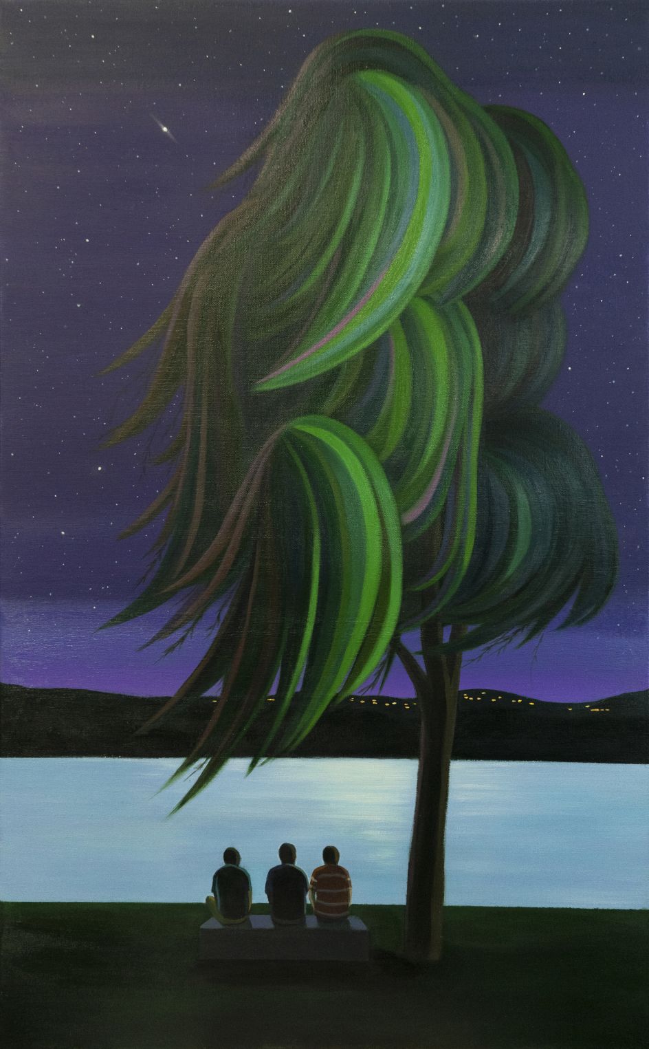 Beyond this process and general themes, she's unsure she has a specific style. "But when I paint, I always think of expressionism," she says. "I like paying more attention to emotional experience than physical reality."