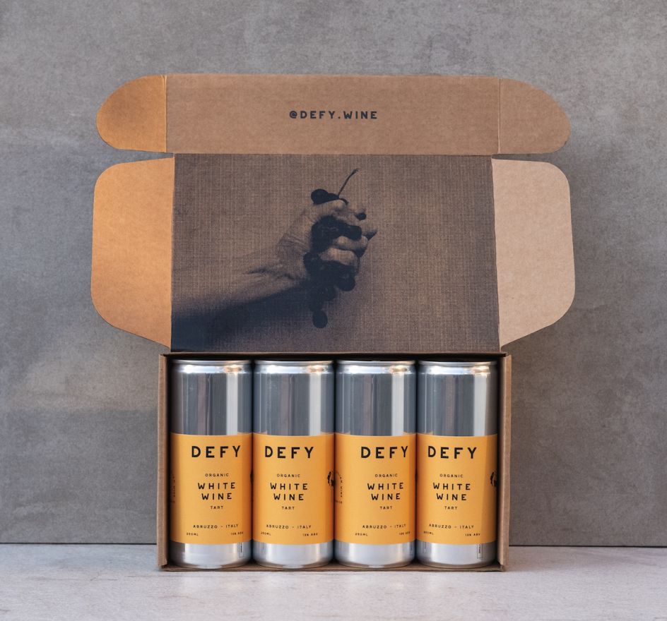 White wine in a can might not sound like the classiest thing; but that's about to change when you take a look at the new cans from "design-led" wine startup brand, Defy.
