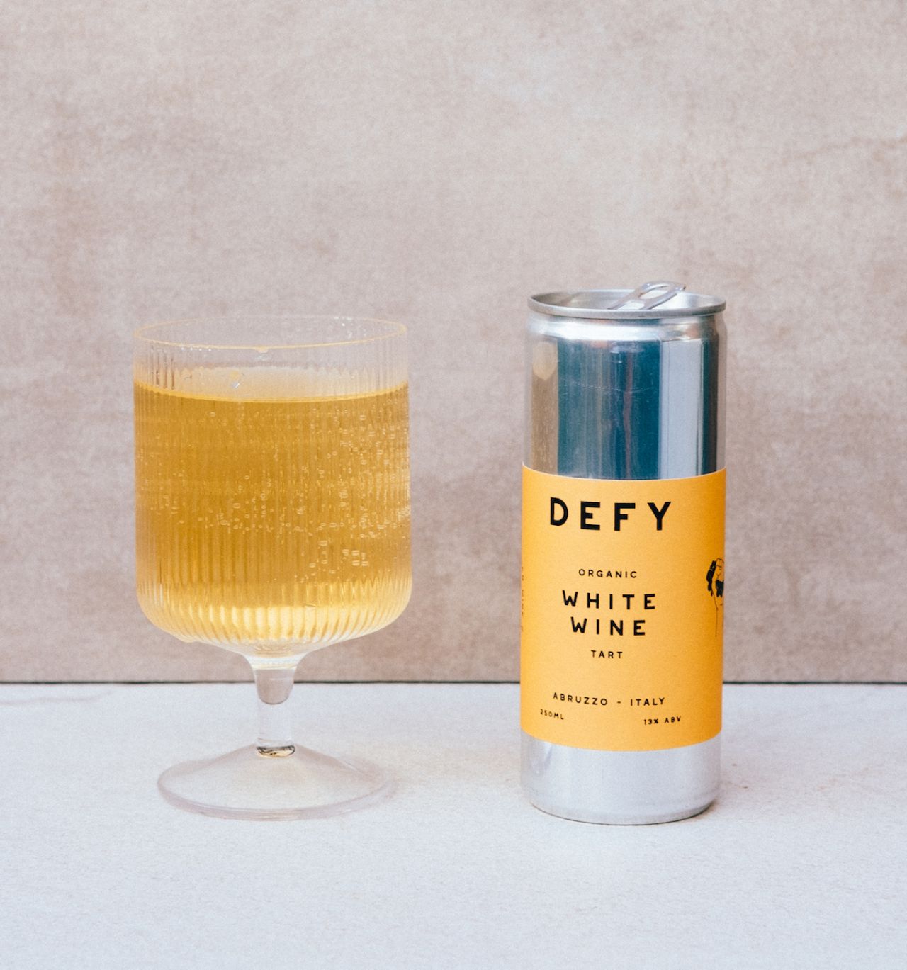 "What is important was the cans themselves," says Defy founder Leslie Owensby. "They are packaging the wine in 250ml slimline cans, and we knew these needed to be able to stand alone on the shelf, next to other drinks, and still stand out."