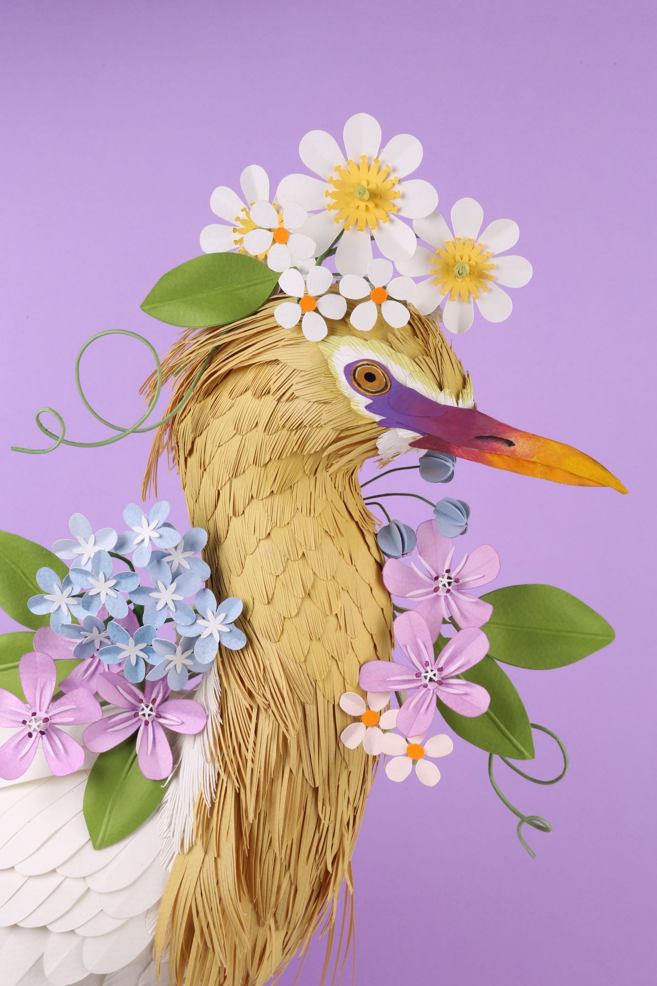 From book covers and album sleeves to set design and editorial, Herrera is commissioned to create all manner of intricate objects and paper sculptures. For instance, for James Canton's The Oak Papers, she recreated a tree stump and its rings out of paper. And for The Telegraph's Stella magazine, she made a paper island for the publication.