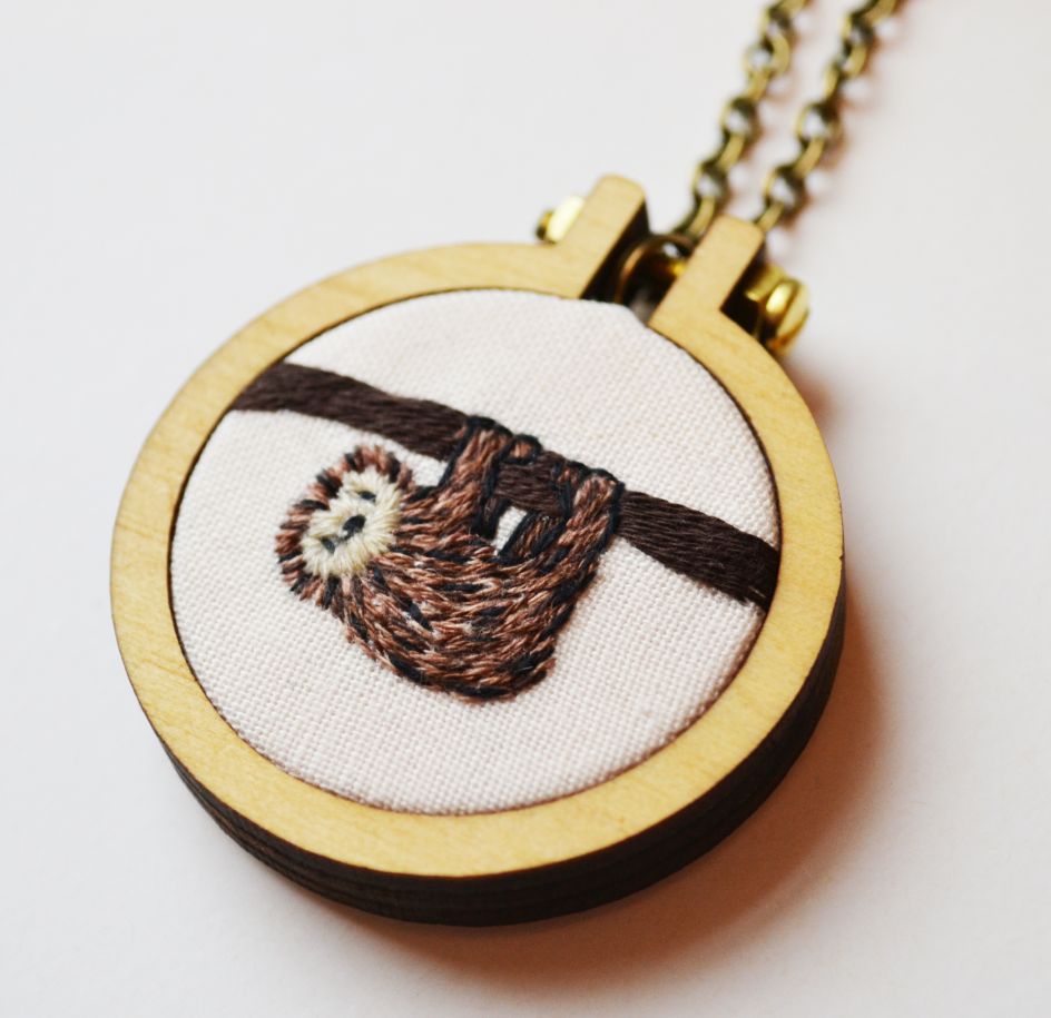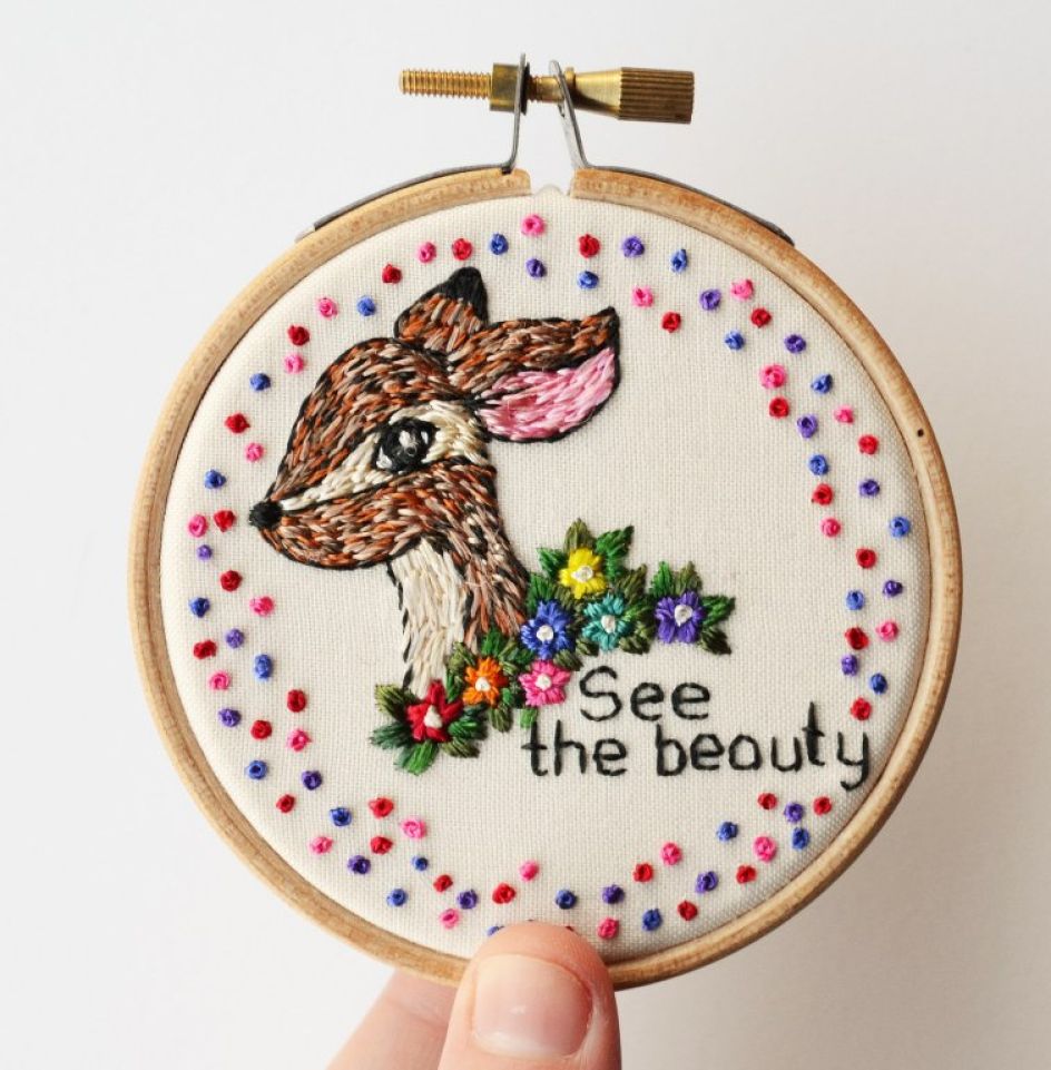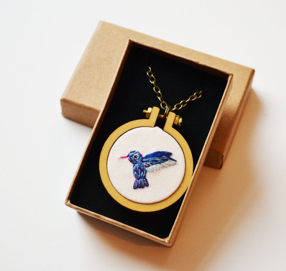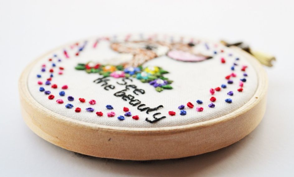 Each embroidered artwork is finished in a hand-crafted embroidery hoop from Sonia of Dandylene – an Australian maker who has perfected the tiny hoop.