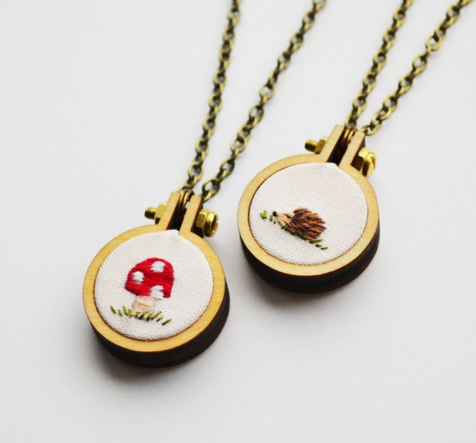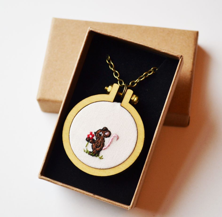 Manchester-based creative Katy Fenner – aka Pixiecraft – stitches tiny pieces of embroidery measuring no more than 2.5cm, with each piece meticulously stitched by hand and based on her miniature sketches of woodland creatures.