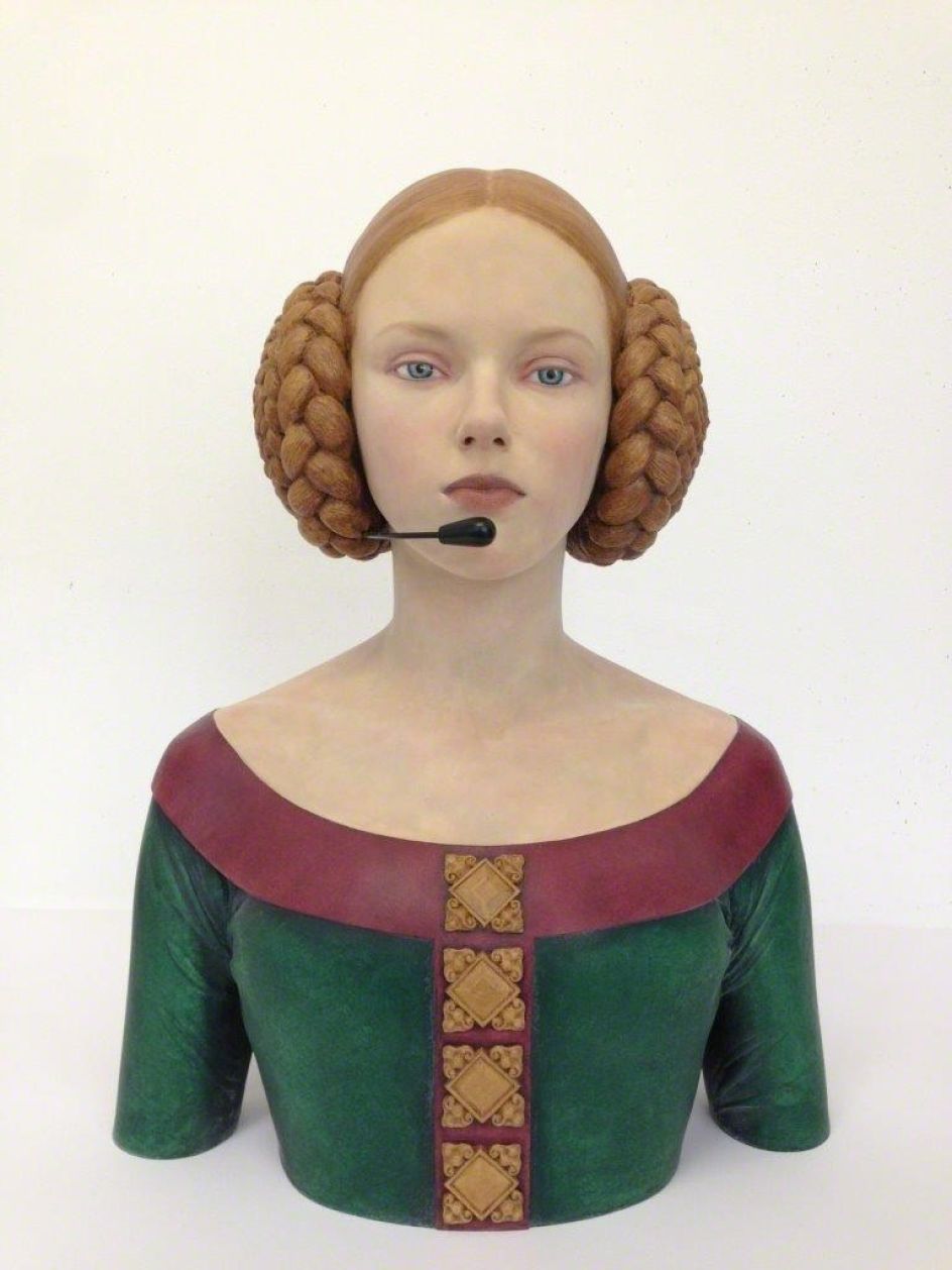 Spotting a stage-ready microphone attached to an Italian woman from the 15th century is always going to raise a smile or two. There's certainly a sense of humour that flows through the delightful sculptures of Spanish artist Gerard Mas.
