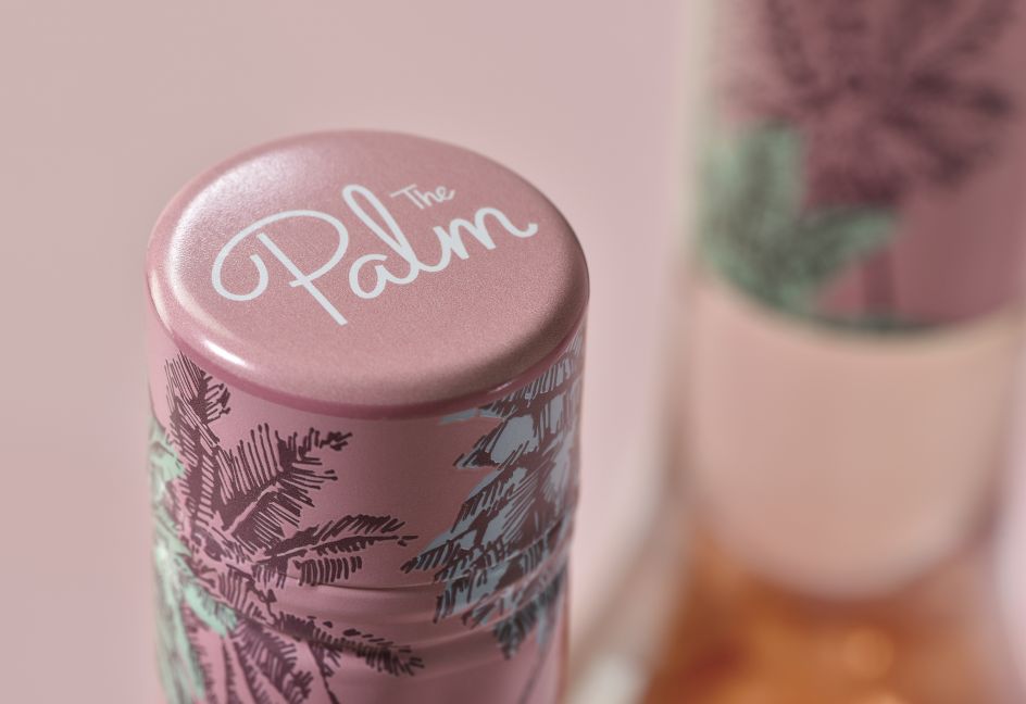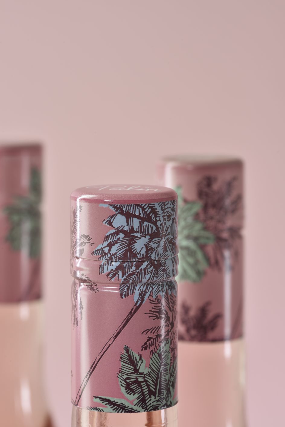 "Our illustration was inspired by a vintage botanical etching of a palm tree, which adds refinement and depth to the design, and reflects the French provenance of the wine. For the sky, we’ve tempered the vibrant pinks of a Californian sunset with the subtler hues of sundown in the Côte d’Azur."