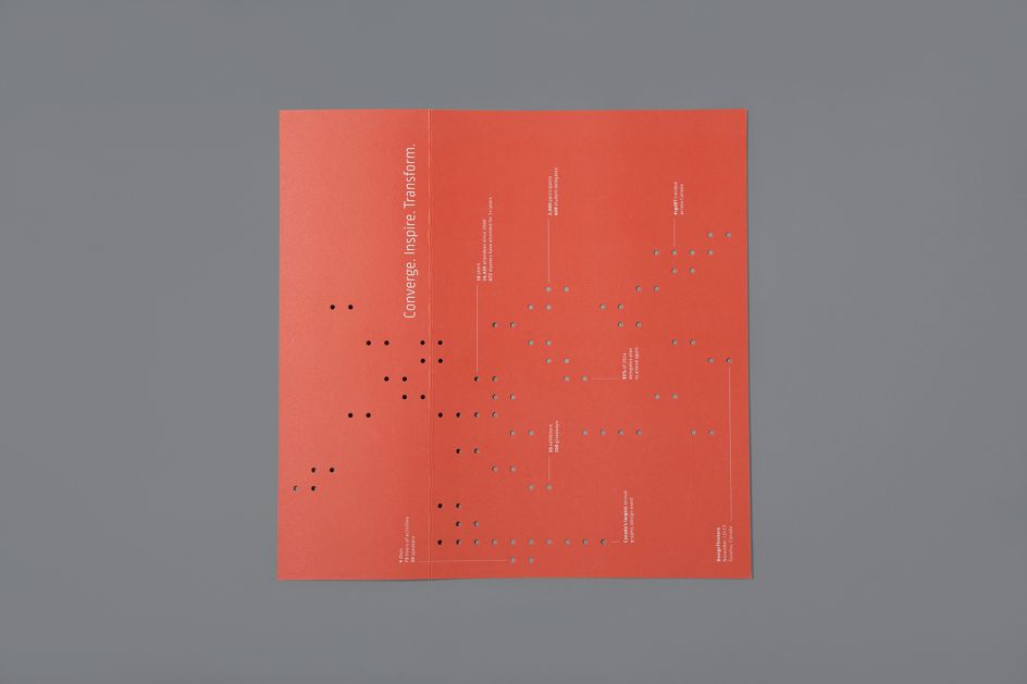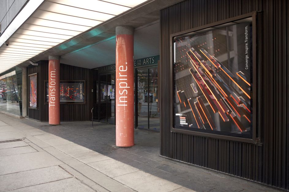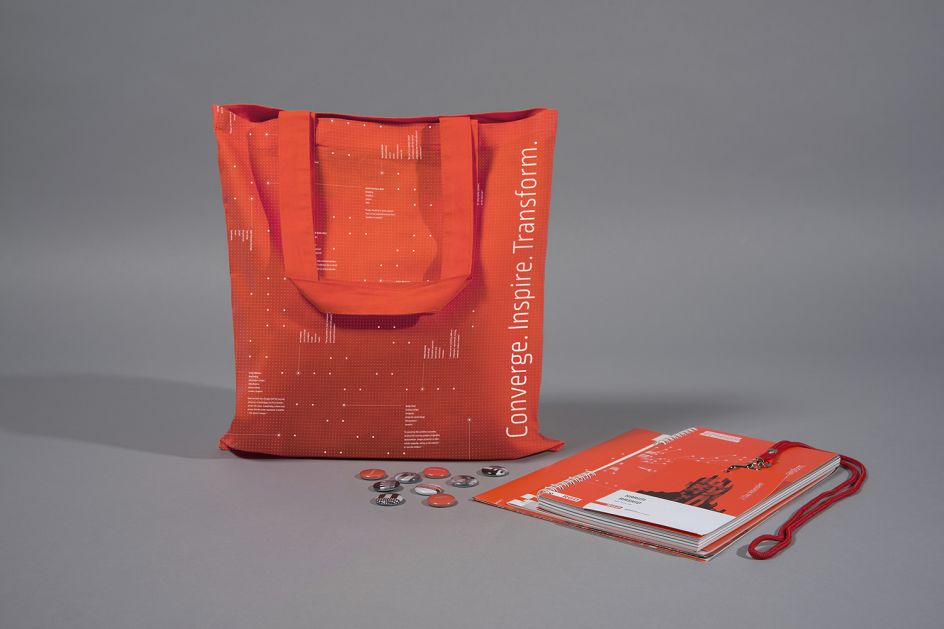 Using the theme of "Converge, Inspire and Transform" – it focused on the speakers, attendees, points of data and layers of information to add cues to the final look and feel. Forming the central basis of the identity was an 8' acrylic sculpture representing a giant speaker made out of the idea of different people with different backgrounds, opinions and skills coming together in one location, at one point in time, that would be memorable.