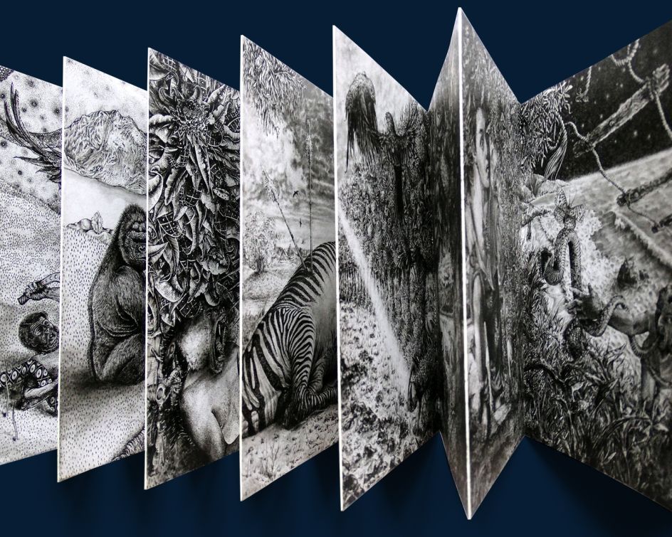 After studying graphic design, Fourment spent two years creating giant Leporello, as large as five-metres long – each filled with detailed drawings in black and white – the precision of which would become a characteristic of his work.