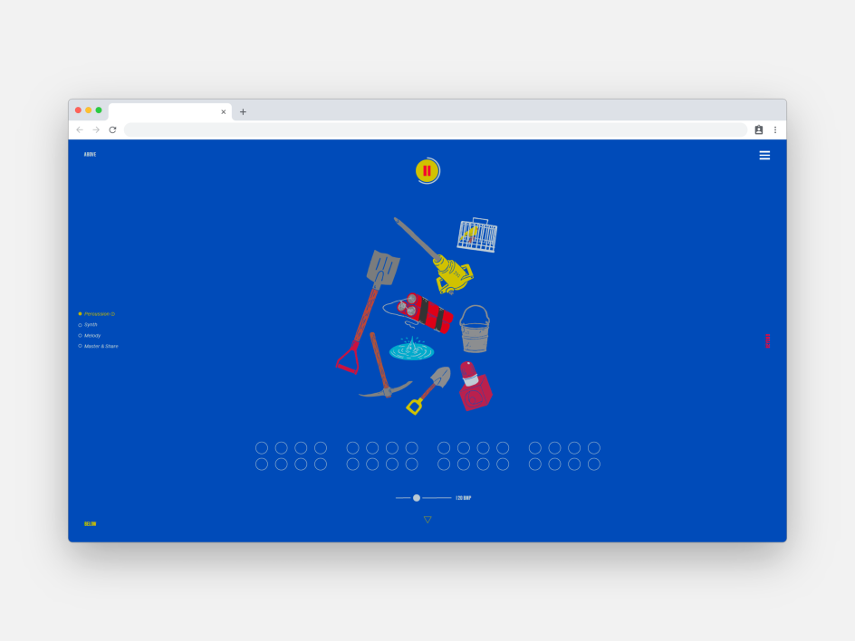 Chris Mason adds: "We created a simple typographic headline that appears from Above, Below and Beyond. A bold colour palette reflects the strands of the project and used the illustrative style of Daniel Nelson to bring the experience to life. All the elements combine to create an intuitive descent of discovery, where you can make noise, build beats and share your creation.