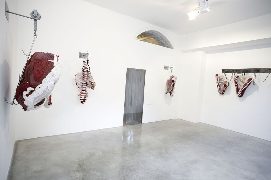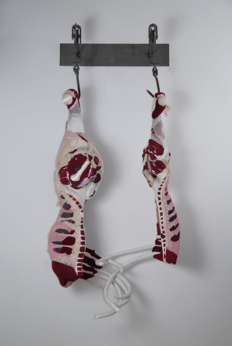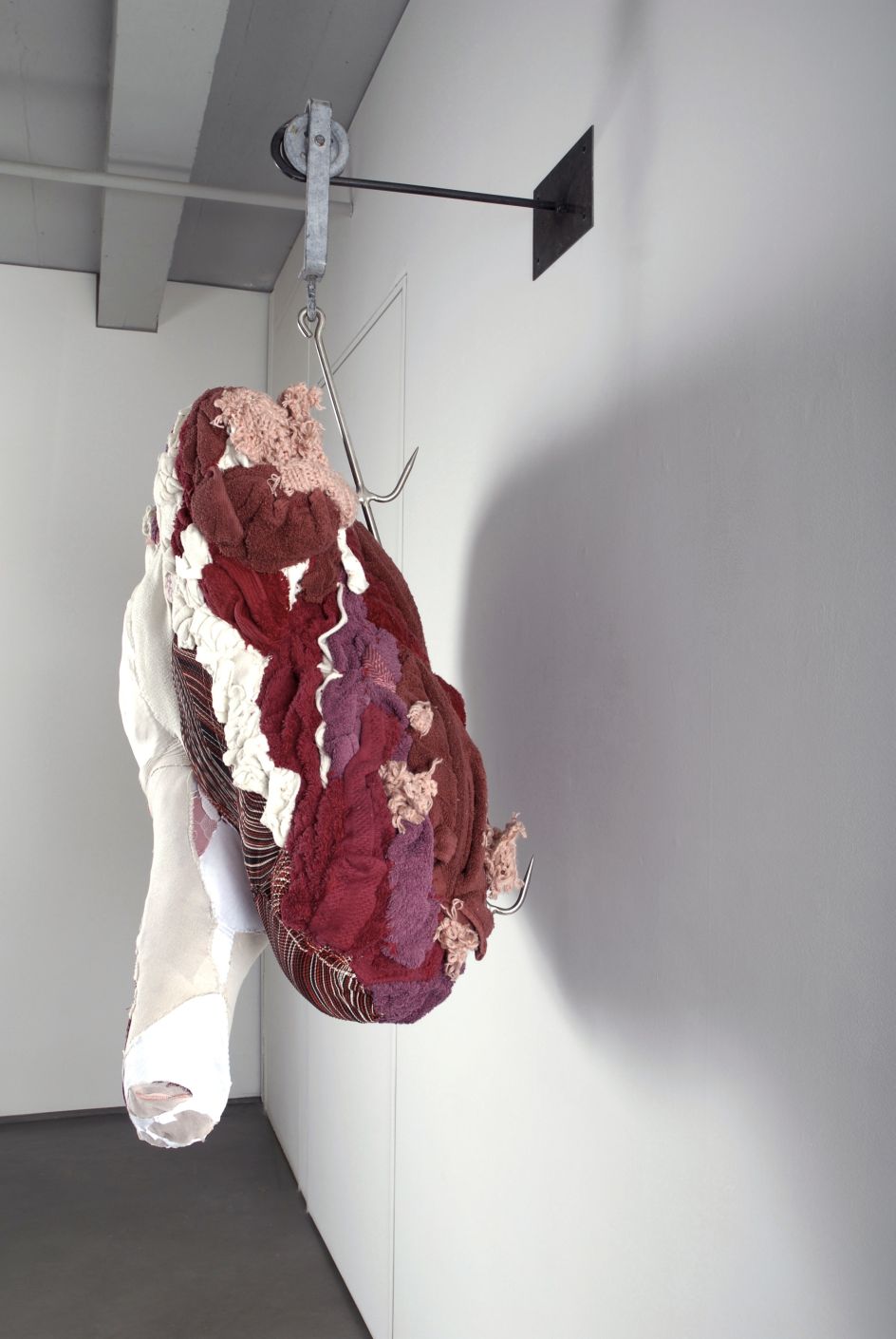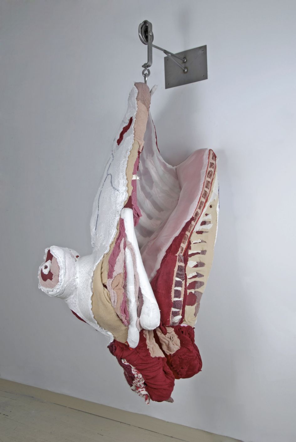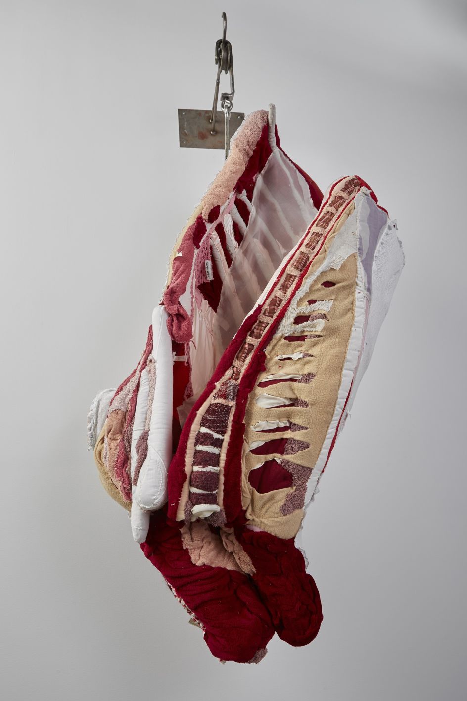 For her series Actus Reus, New York City-based artist Tamara Kostianovsky recreated dead animal carcasses out of discarded fabric and clothing, turning the harshness of slaughtered livestock into plush, easier to visually swallow cuts of meat.