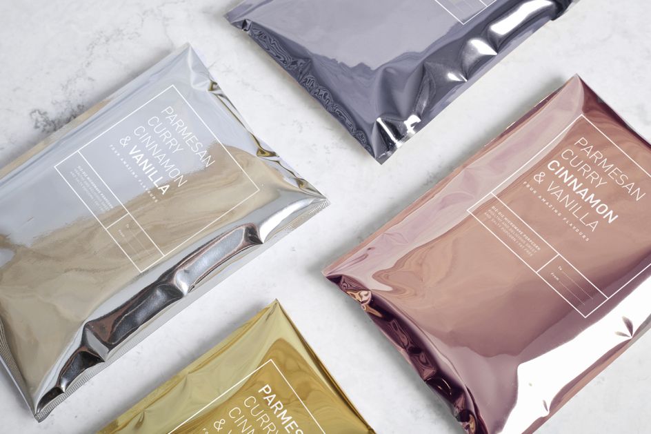 Unusual flavours including cinnamon and vanilla inspired a rich colour palette of rose gold, lilac, silver and yellow gold. Iridescent, mirrored packaging exudes luxury, whilst a marble effect on the boxes adds to the high-end feel of the product.