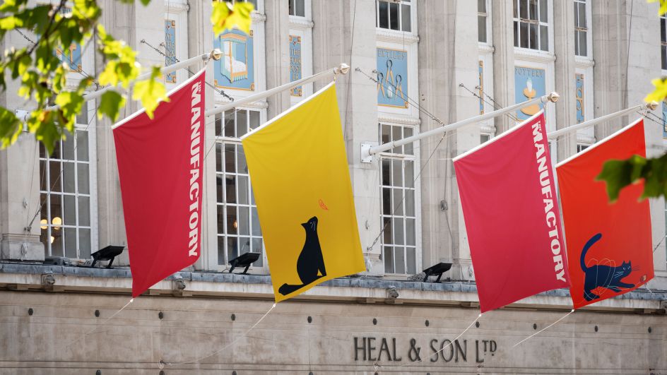 DNCO also brought to life a piece of Heal's story: its bronze cat mascot, which, as an illustration, injects mischief and liveliness into the identity and becomes an innovative storytelling tool for the building's reinvention.