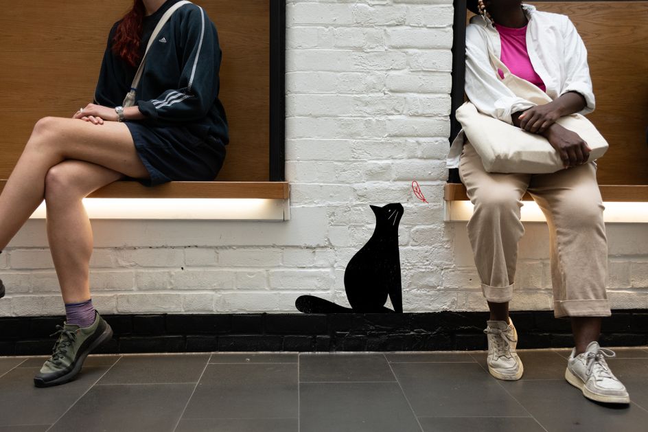 "With a strong sense of movement and fluidity, the visual language is expressive and playful, bold and confident. It all comes back to craft, now and in the future. Strong typographical language weaves through the building, the illustrated cat playfully engages the audience, and intricate line drawings capture these buildings' idiosyncratic architecture."