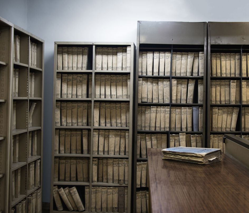 Motifs show traces of the past, but are always deserted. Whether it is the sticky-looking decorations and worn walls of a courtroom, bare tax offices, or abandoned funeral parlours, everything is united by the debilitating impression of an idle bureaucracy.
